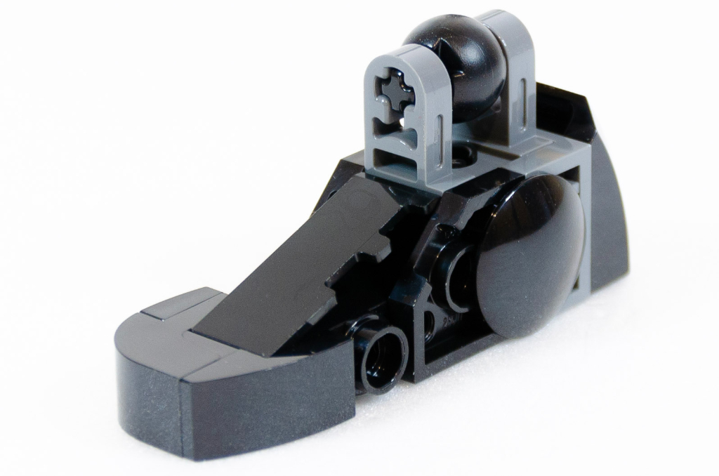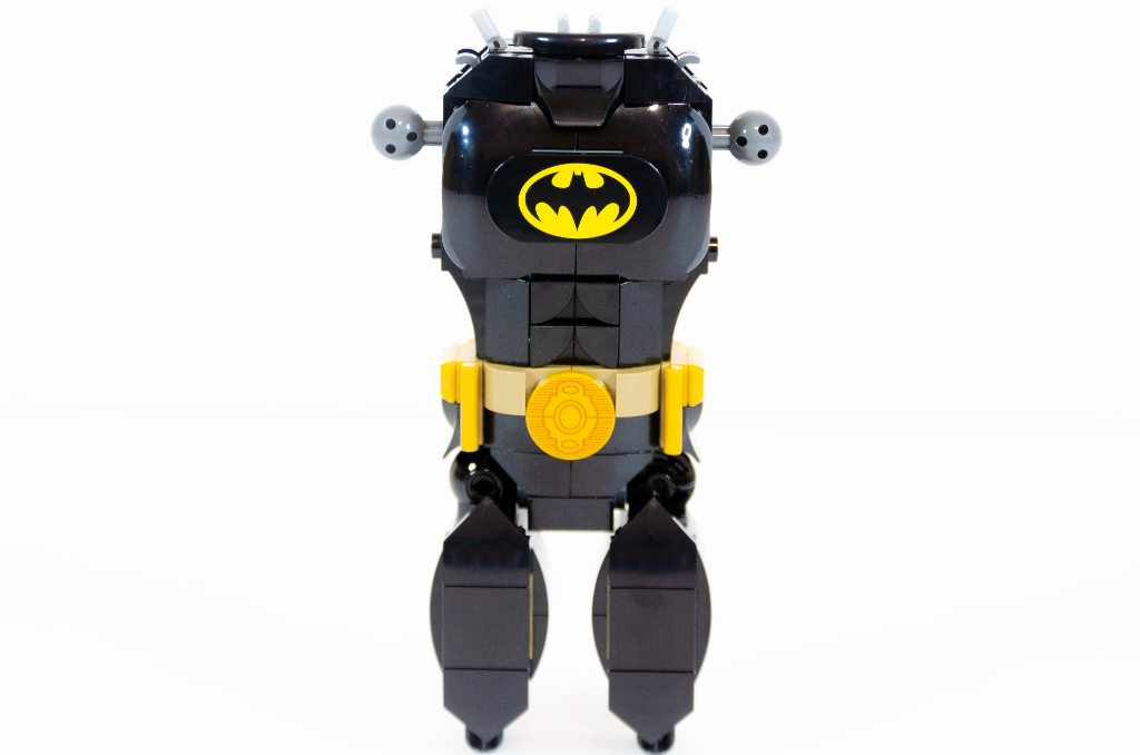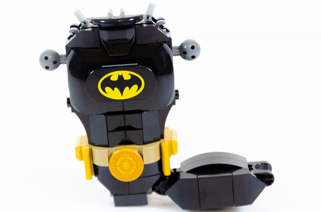 Vous en avez marre de la symétrie et du travail en double? Bah perdu, nous y allons pour les pieds. Cette fois, nous oublions les rondeurs, c’est de la tatane en mode bulldozer. Nouvelle jonction avec une boule technic et Batman est littéralement sur pied.