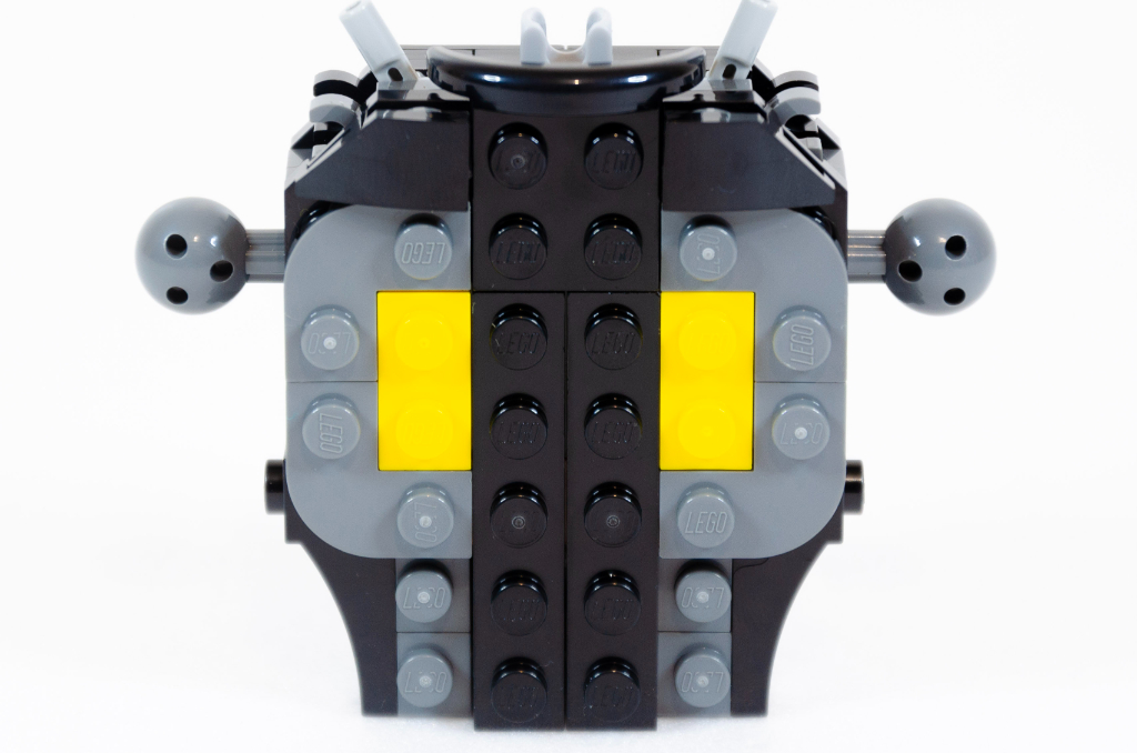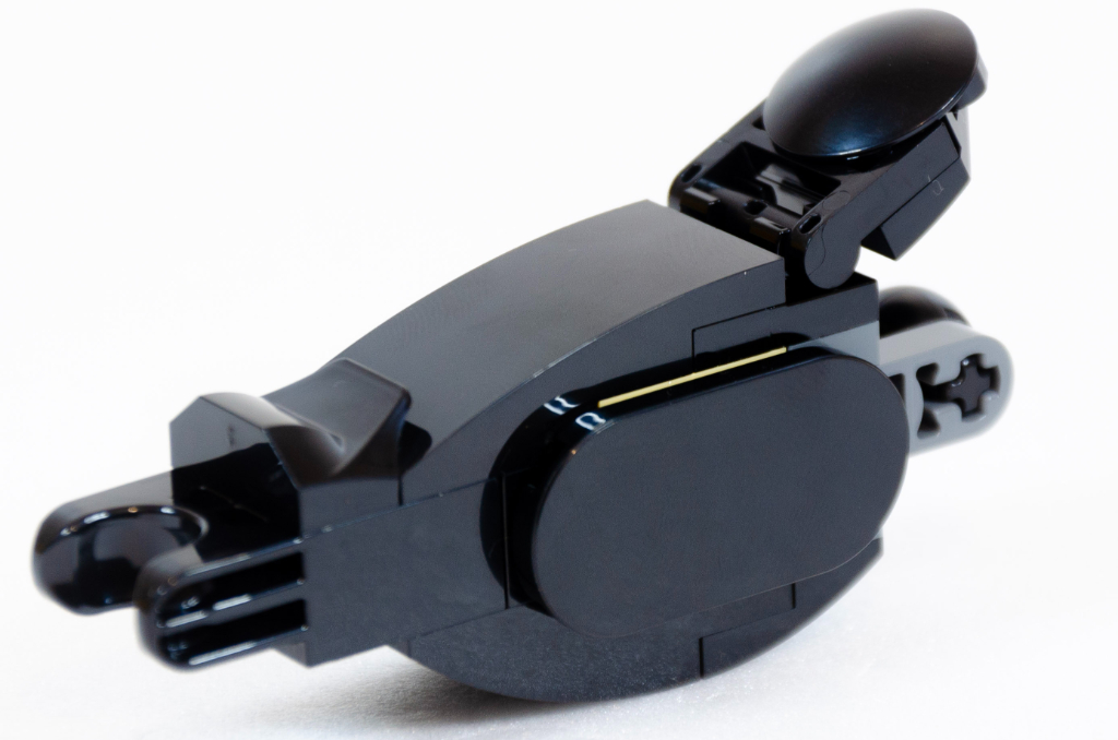 Je crois qu’il nous reste encore un peu de rab de symétrie. C’est parti pour les bras. La nouveauté ici est autours du coude avec l’utilisation de deux « gingembre plate ». LEGO nous ajoute des sortes de griffes sur ces biceps et là je suis un peu perdu, mes souvenirs et une rapide recherche me disent que le Batman 1989 n’a pas ces appendices mais plutôt le Batman 1992 (Returns / Le défi) et si je ne me trompe, c’est dommage que LEGO écrive sur sa boutique en ligne « tel qu’il apparaît dans le film Batman de 1989 » alors que les trademarks de la boîte indiquent bien “Batman Returns”. Allez, ce n’est pas ça qui gâchera la construction.