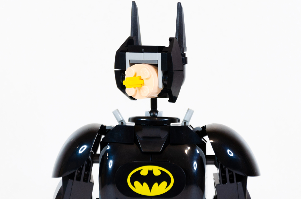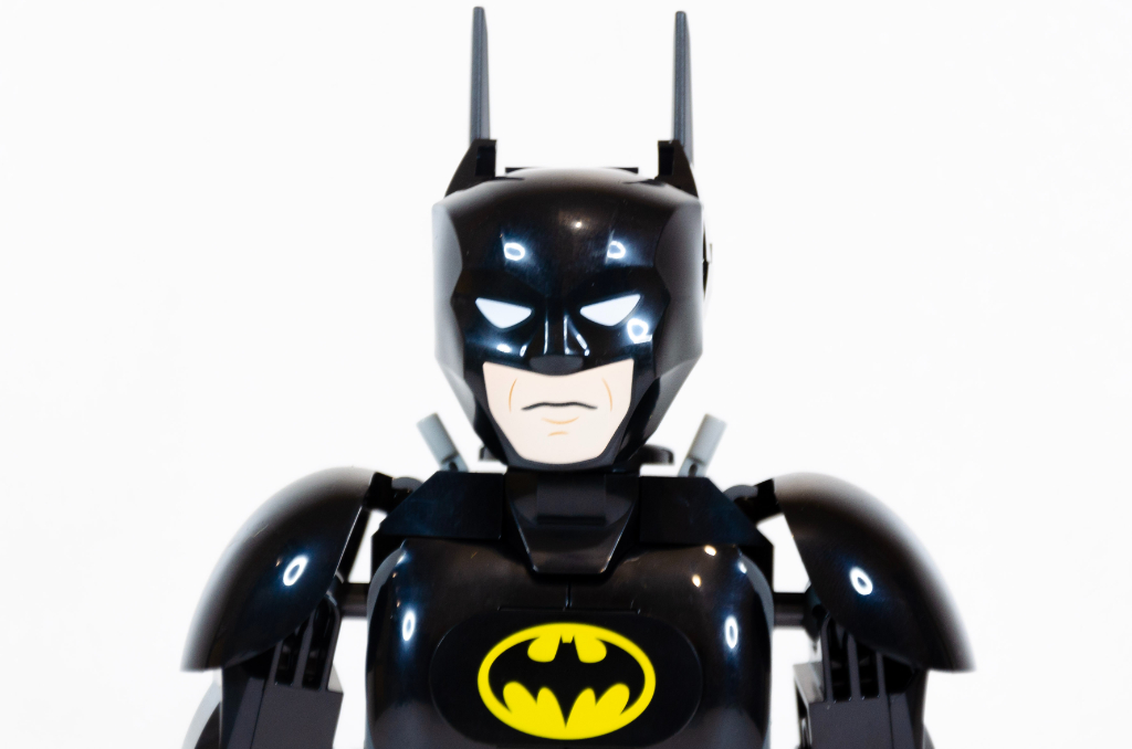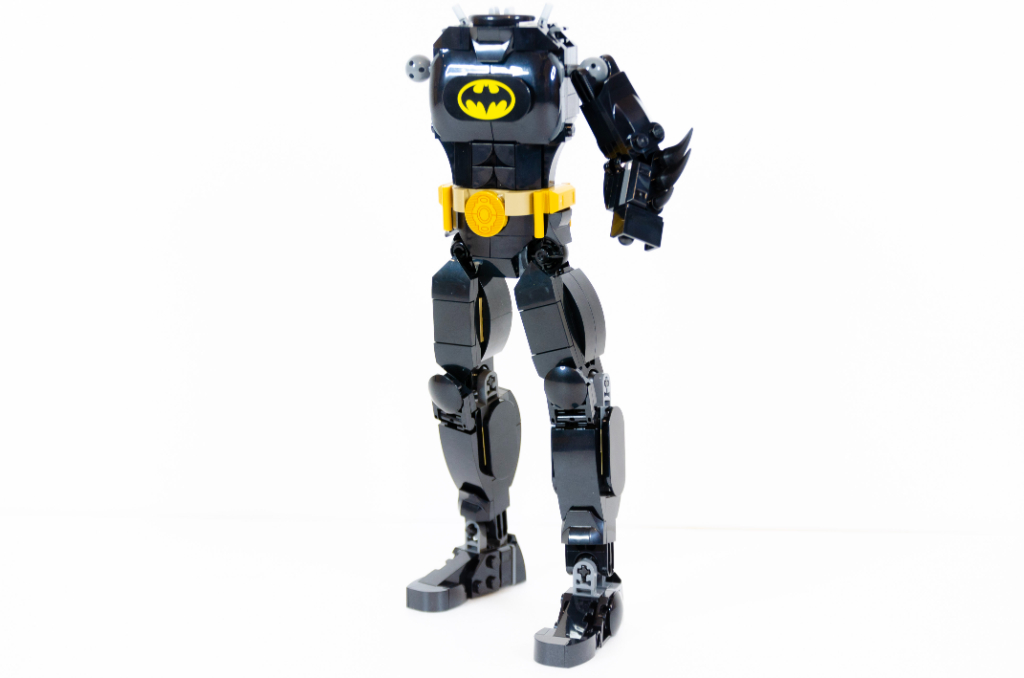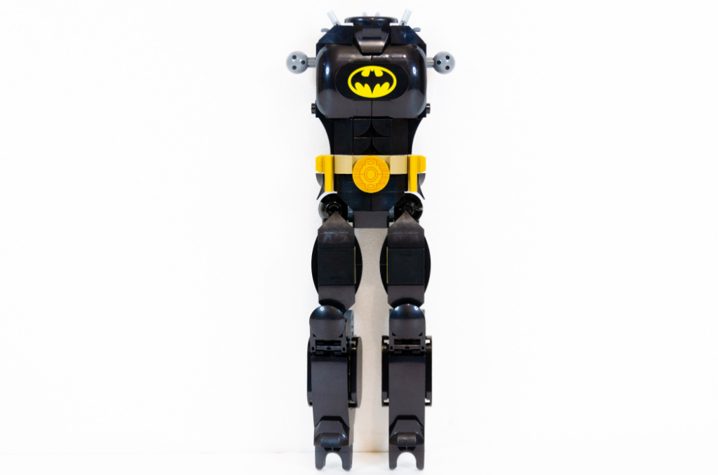 J’ai plutôt apprécié construire cette figurine malgré la symétrie inévitable. Je reconnais aussi que d’avoir eu des pièces spécifiques (cape, visage, logo ou boucle de ceinture) à la place d’autocollants m’aident beaucoup à ne pas m’agacer avec des poses aléatoires sur des surfaces courbes.