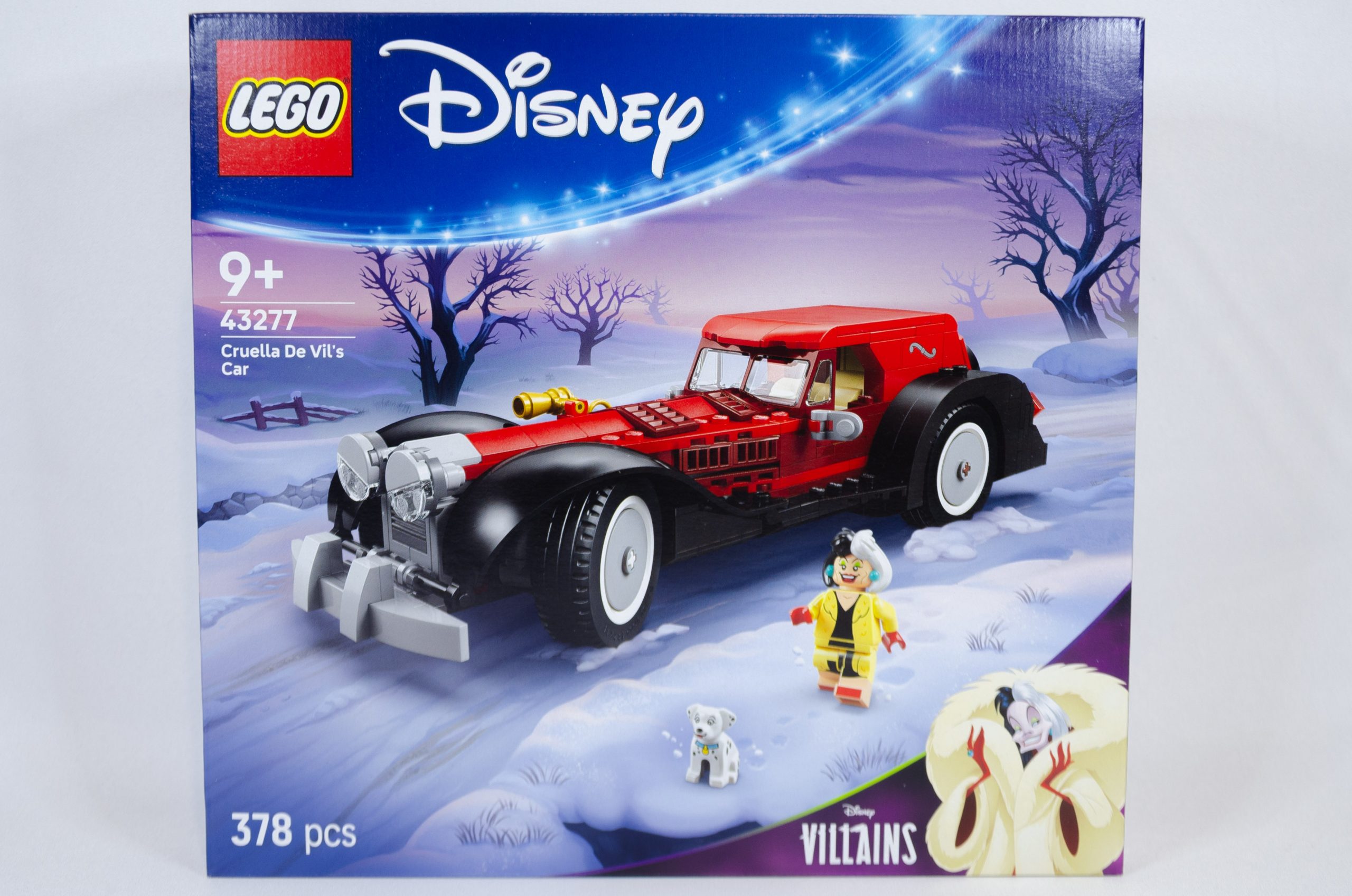 Aujourd’hui, je vous propose d’aller parcourir les routes enneigées à la recherche d’un manteau bien chaud pour l’hiver avec notre experte mode et sa voiture. Faisons un tour de bolide avec le set LEGO Disney 43277 Cruella De Vil’s Car (en VF : La voiture de Cruella d’Enfer).