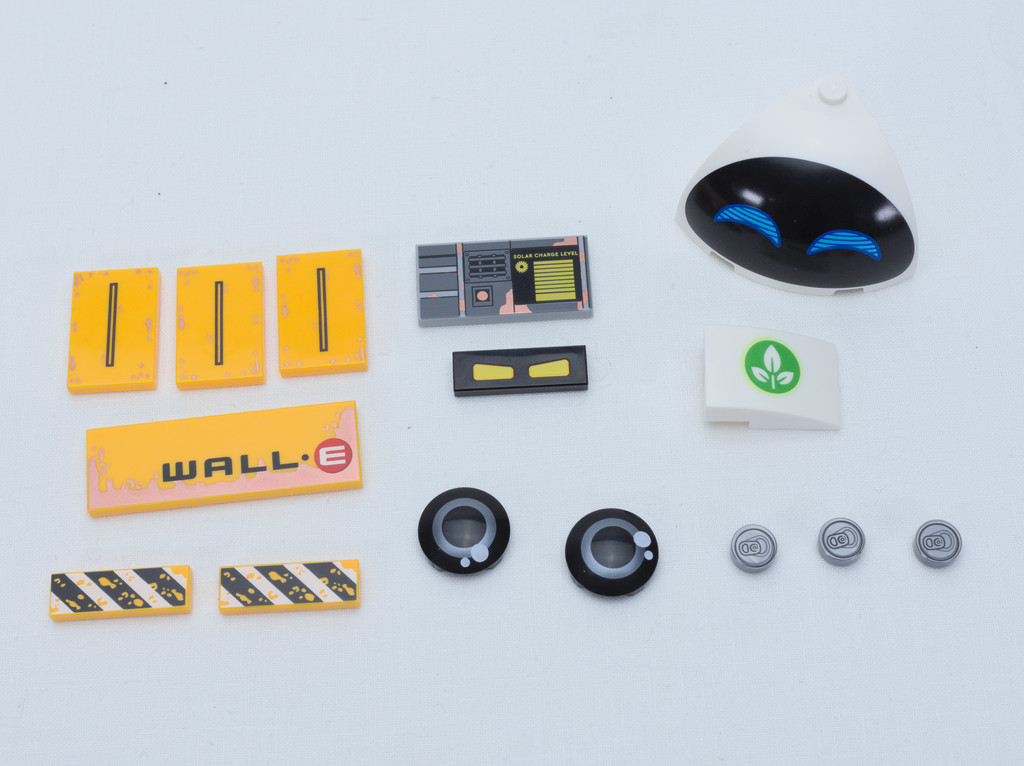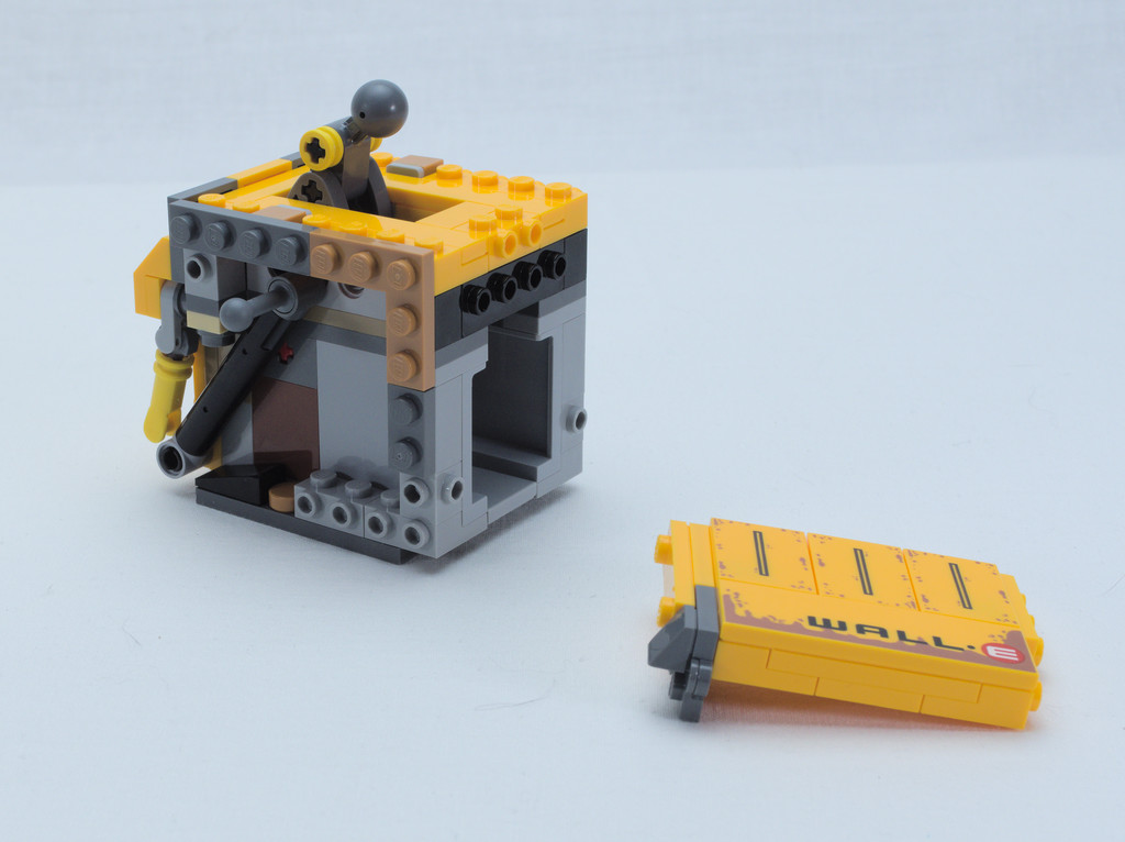 WALL-E est clairement le plus intéressant et amusant à manipuler par ses fonctionnalités. Les chenilles, légèrement souples, permettent de le faire rouler sur n’importe quelle surface, même lisse. Les bras peuvent bouger d’avant en arrière, mais aussi de haut en bas (absent du set 21303). La trappe permet de glisser aussi bien le bloc compacté de déchets que la plante verte. Sa tête est mobile et tient dans n’importe quelle position, de quoi lui donner plusieurs expressions.