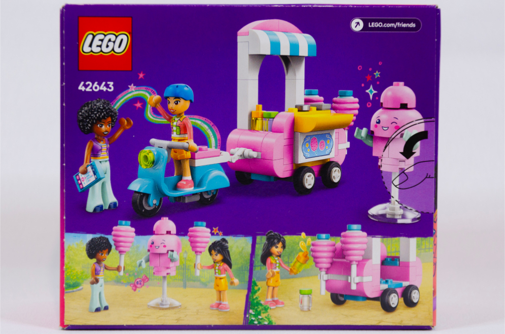 Aujourd’hui je vous propose, pour ma première revue de l’année, de commencer avec un petit set de la gamme Friends et d’accompagner Liann et Jamila acheter des sucreries avec le set 42643 Cotton Candy Stand and Scooter ou pour nos contrées le Stand de barbes à papa et scooter .