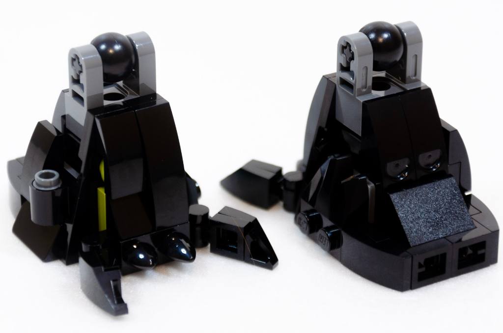 Quoi, vous avez ouvert le sachet et lancé LEGO Builder ? Ok, LEGO est en général sympa et propose de changer facilement les modèles quand ce ne sont pas de vrais 3-en-1. Et non, perdu, LEGO nous dit que tu recommences depuis zéro. J’avoue avoir un peu râlé au moment de cette découverte. C’est donc parti pour repérer les étapes qui impliquent le cinquième sachet. J’ai donc démonté les parties concernées par les modifications et cliqué comme un damné pour esquiver les parties communes. Je ne vais pas dire que je me suis éclaté mais ce n’est pas non plus insurmontable. Je me suis ajouté une bonne quarantaine de minutes pour tout faire. Je vous épargne les photos, le montage est le même sauf que c’est tout noir.