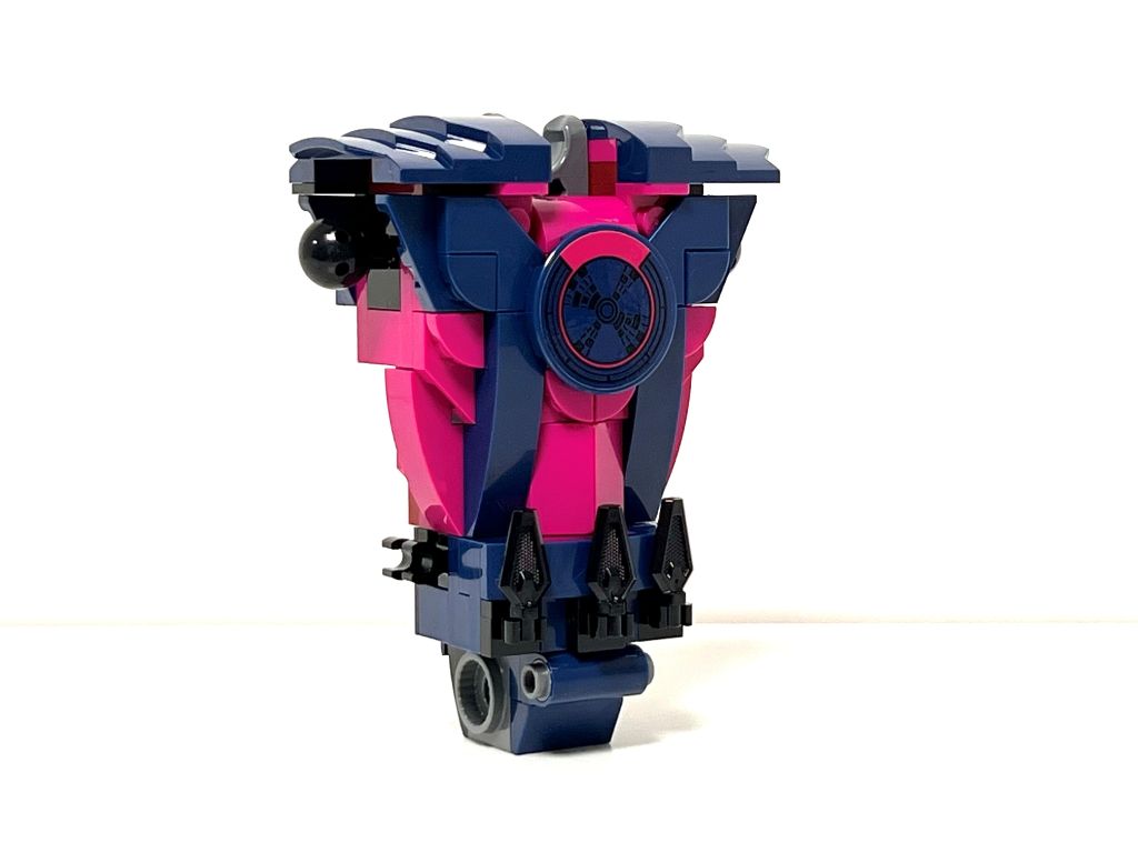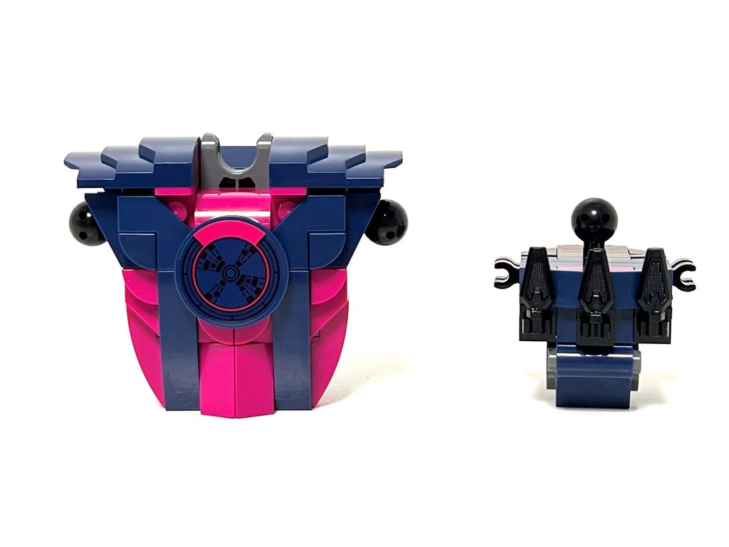 Grand lecteur des comics Marvel, je retrouve beaucoup des codes graphiques habituels de ce personnage unique qu’est Galactus, que ce soient les couleurs, les « jupes » autour de la taille et sa tête cylindrique. La face avant est, comme souvent avec ce type de construction, mieux traitée que la face arrière mais c’est une bonne idée d’avoir incorporé le support transparent au dos. Bon on oubliera évidemment cette taille absolument pas proportionnelle à ce qu’est Galactus (que ce soit dans les comics ou dans le trailer du film) mais pouvait-il en être autrement…