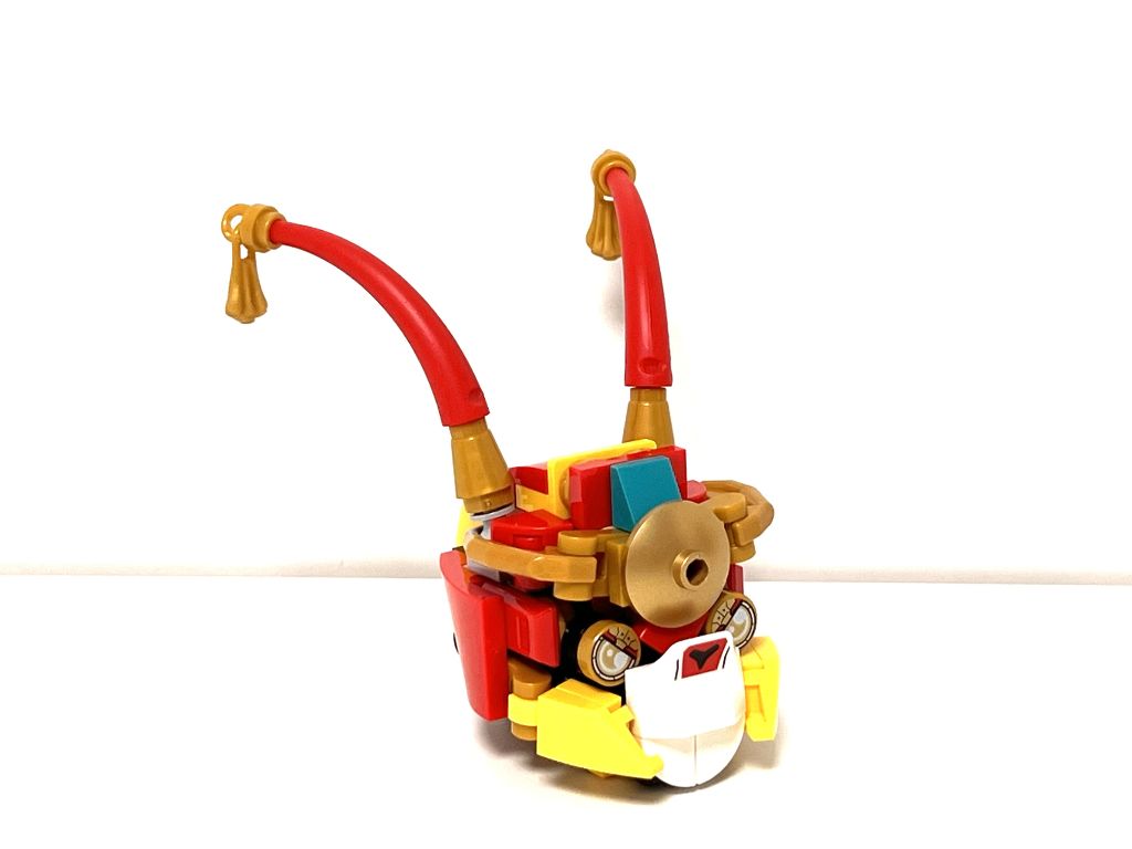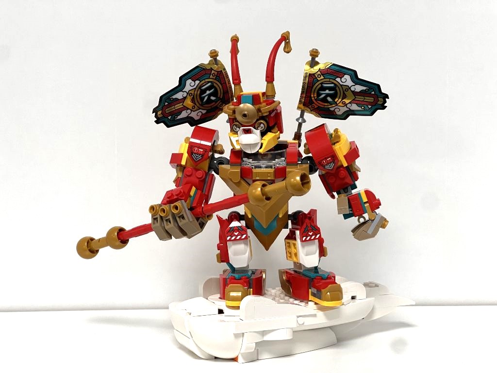 Et ce robot ne présente aucune fonctionnalité particulière, pas de stud shooters ou autres types de lance machins. Il est le reflet de son héros, uniquement équipé de son bâton magique. Mais il est bien articulé pour sa taille et solide comme il faut à la manipulation. C’est donc un bon jouet.