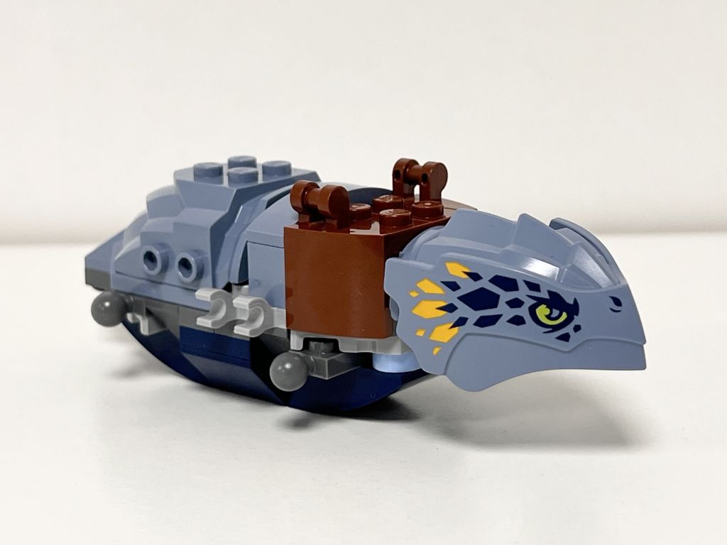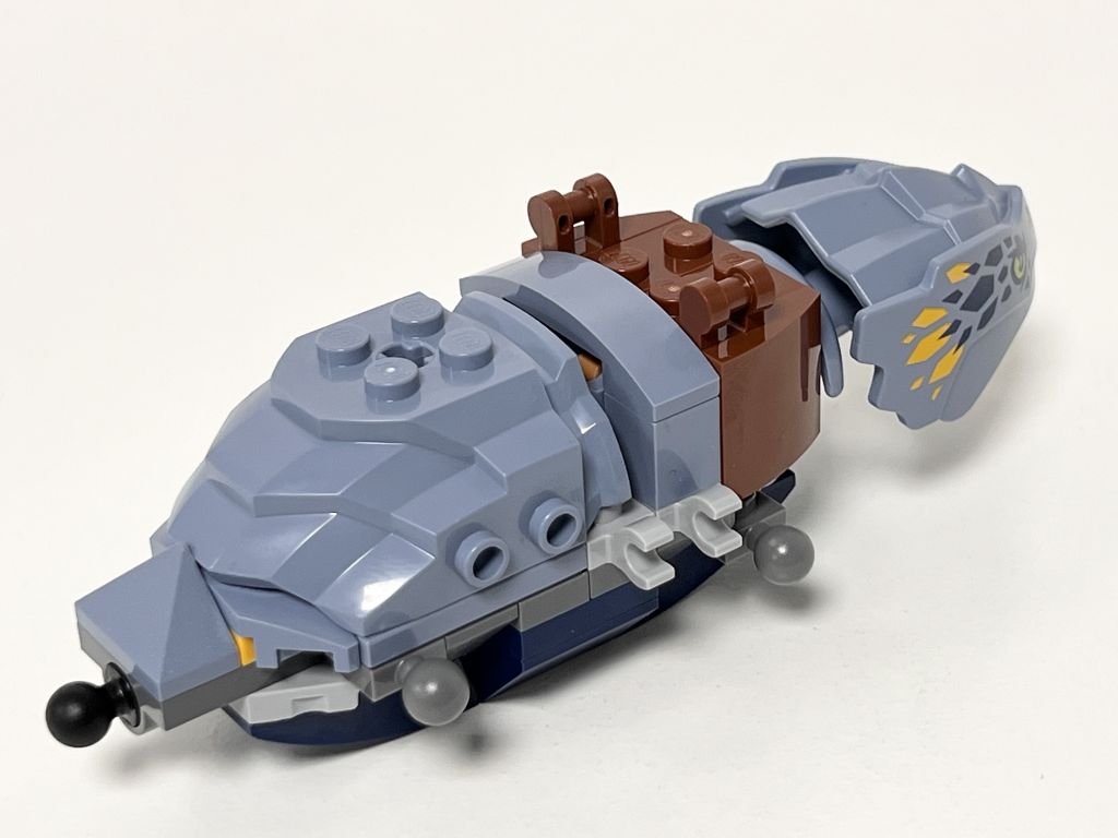 Il est sympa ce petit dragon. Les Ball Joints gris matchent particulièrement bien ici. L’animal peut prendre tout un tas de positions. On peut y installer les deux héros même si une seule place sur selle est représentée. Bref c’est du tout bon pour cette réalisation d’une centaine de pièces.
