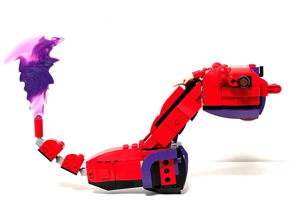Plutôt chouette ce dragon ! Et comme tu le soulignes, ça nous change de ce que LEGO nous propose d’habitude et rien que pour ça, il mérite de l’intérêt. Le choix de couleurs est canon, et pour une fois les jonctions savent se faire plutôt discrètes !