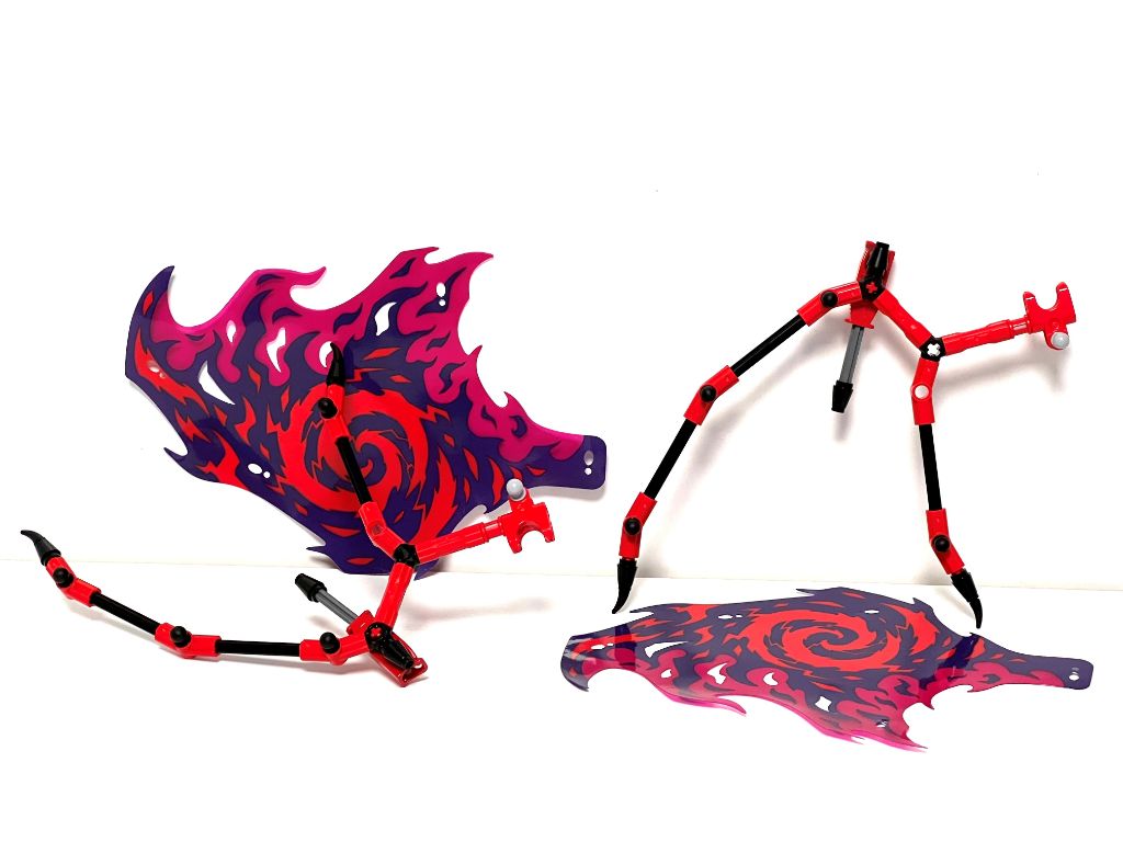 Comme je l’ai mentionné précédemment, ce dragon est un bipède et se différencie donc beaucoup de ce que j’ai pu voir jusqu’à présent. Son corps élancé, posé sur ses jambes et avec ses longs bras lui procure une stature imposante. Les ailes rajoutent du volume à l’ensemble. Les membres sont purement symétriques (et non des copies identiques), même les pieds. De ce point de vue là le designer a fait un super boulot. Les articulations sont suffisantes pour le jeu et les poses dynamiques sans permettre évidemment des figures farfelues. Le jeu de chaînes et le collier procurent bien le sentiment que le dragon est prisonnier malgré la puissance qu’il pourrait manifester.