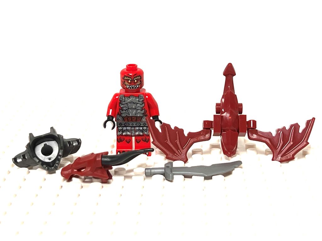 Enfin les deux méchants sont Nokt et Tyr. On retrouve les mêmes qualités que pour les héros. Ce sont surtout les accessoires de Tyr sur la thématique des dragons qui attirent l’attention. Il y a d’abord ce casque en deux parties que je trouve génial et ce jet pack dragon avec ses ailes qui donnent beaucoup d’allure au personnage sans l’alourdir comme le pourraient certains mini ensembles déjà vus auparavant.