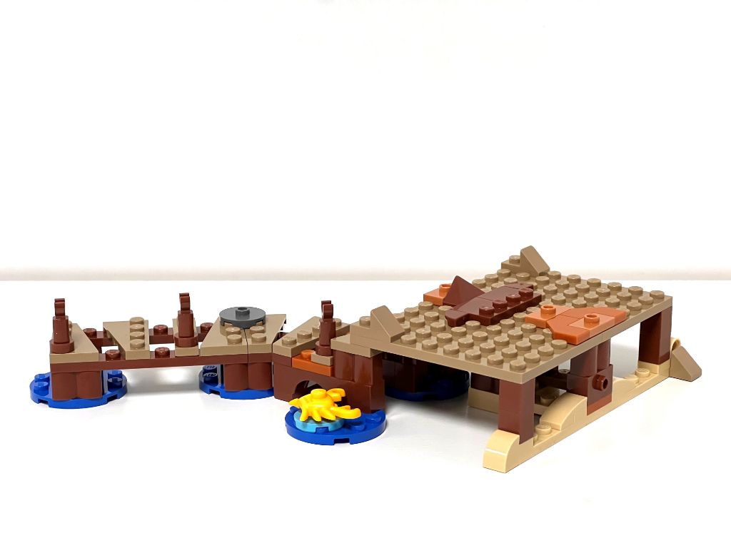 A l’issue du second sachet, on obtient la grosse base de la charpente du bungalow avec un peu de décorations. Il y a quelques passages en SNOT mais rien de bien notable.