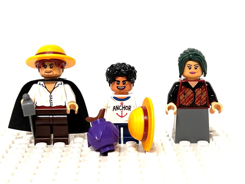 Il s’agit évidemment de la raison d’être d’une telle boite, 3 minifigs tout simplement exclusives à ce set. Et LEGO a fait l’effort de respecter les visuels et motifs, que ce soit les chemisiers de Shanks & Makino tout comme le t-shirt de Luffy. Rien à redire , c’est réussi.