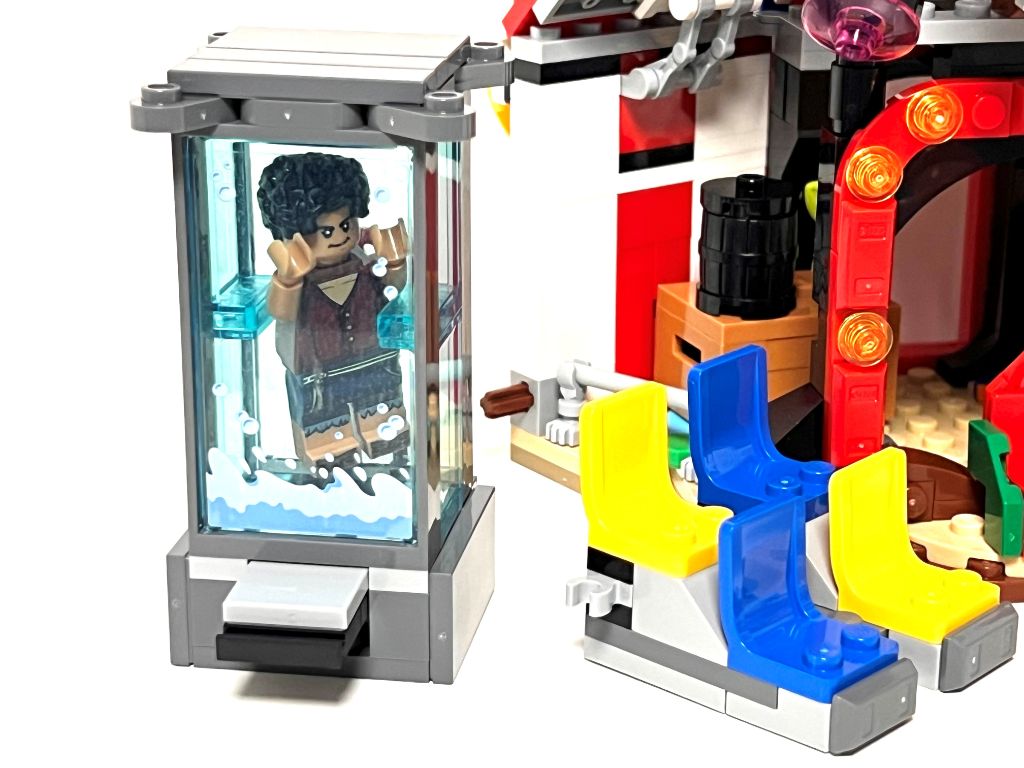 Luffy est équipé d’un neck bracket qui permet d’accrocher son fameux chapeau dans son dos. La minifig est trouvable dans les autres boîtes de la gamme hors la toute petite que j’ai déjà testée. Par contre il n’y a pas ici la version du duo chapeau cheveux que l’on peut trouver dans d’autres sets.