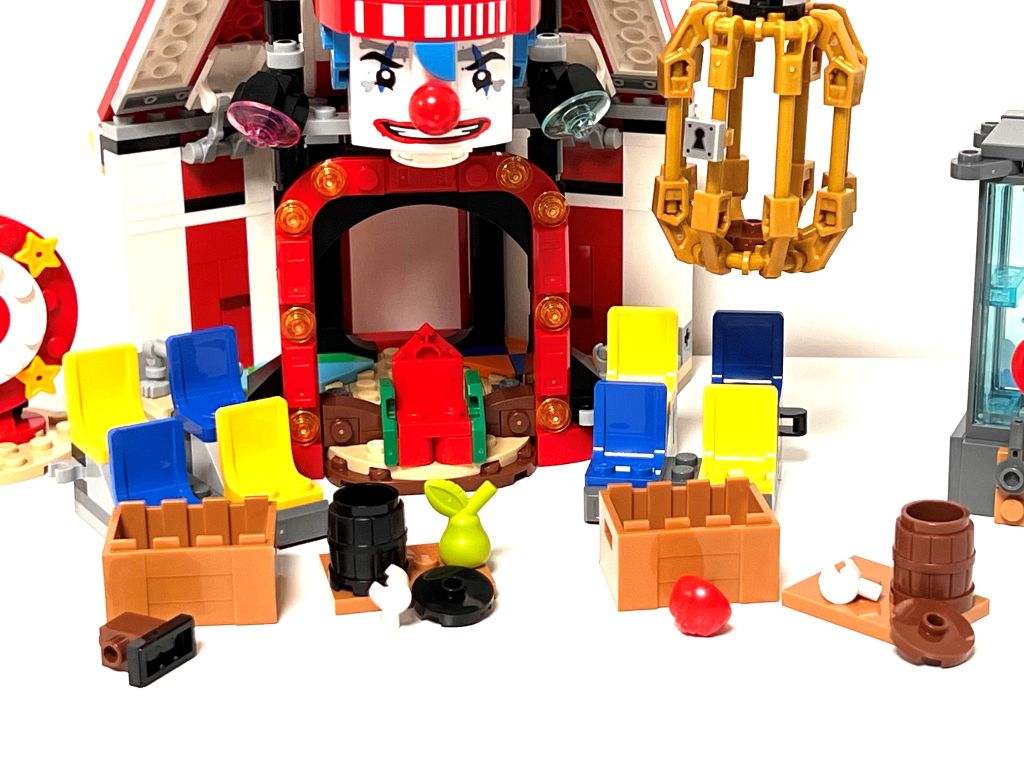Il était évident qu’avec moins de 600 pièces on n’allait pas obtenir un chapiteau complet. Mais le designer a prévu la possibilité de fixer de nouvelles tranches de cirque pour ceux qui voudraient à tout prix avoir un ensemble plus conséquent. Il faut repasser à la caisse mais le marché secondaire regorge de propositions de sets dépourvus de minifigs et donc particulièrement abordables. Au delà de ça, on trouve quand même tous les éléments iconiques de l’affrontement entre Baggy et les héros. Chaque élément est suffisamment bien réalisé.