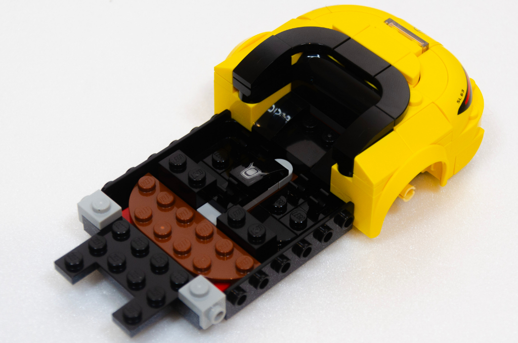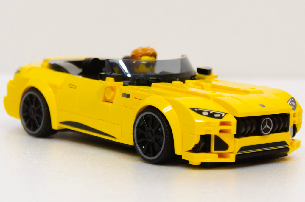 Sans être mon type de véhicule, le Classe G est parfaitement adapté aux formats briques. Ça doit aussi le premier de la gamme avec quatre vraies places ? La SL souffre un peu plus, mais les (pénibles) autocollants aident pour les lignes, et en jaune c’est sympa. C’est aussi une nouveauté ces capots ouvrants ? Bon point en tout cas.