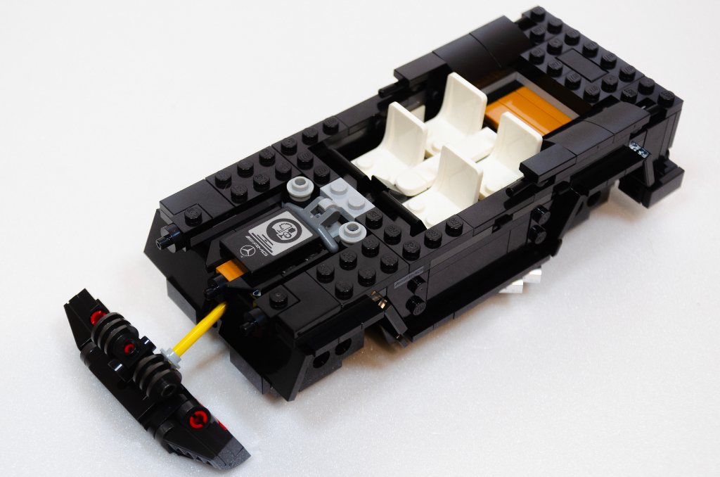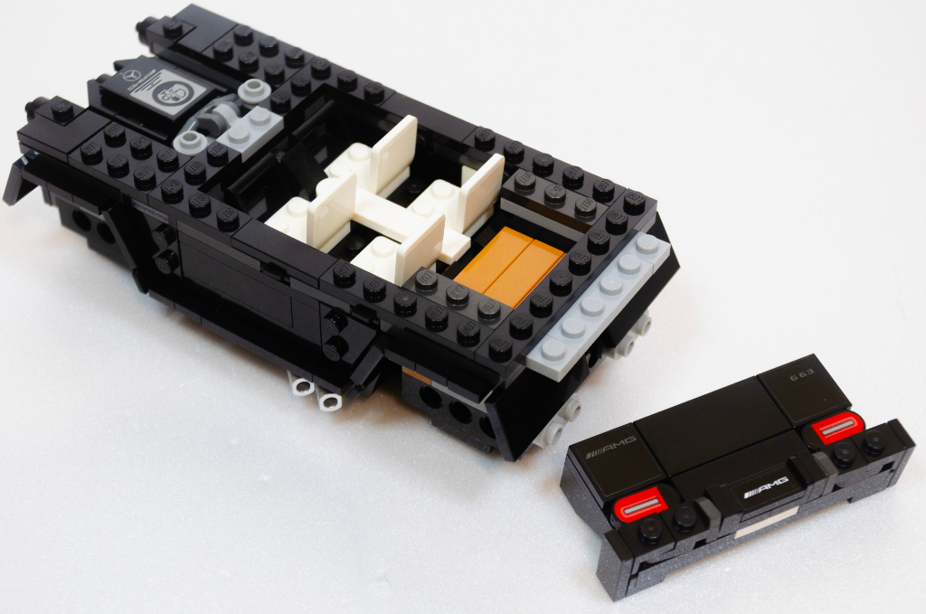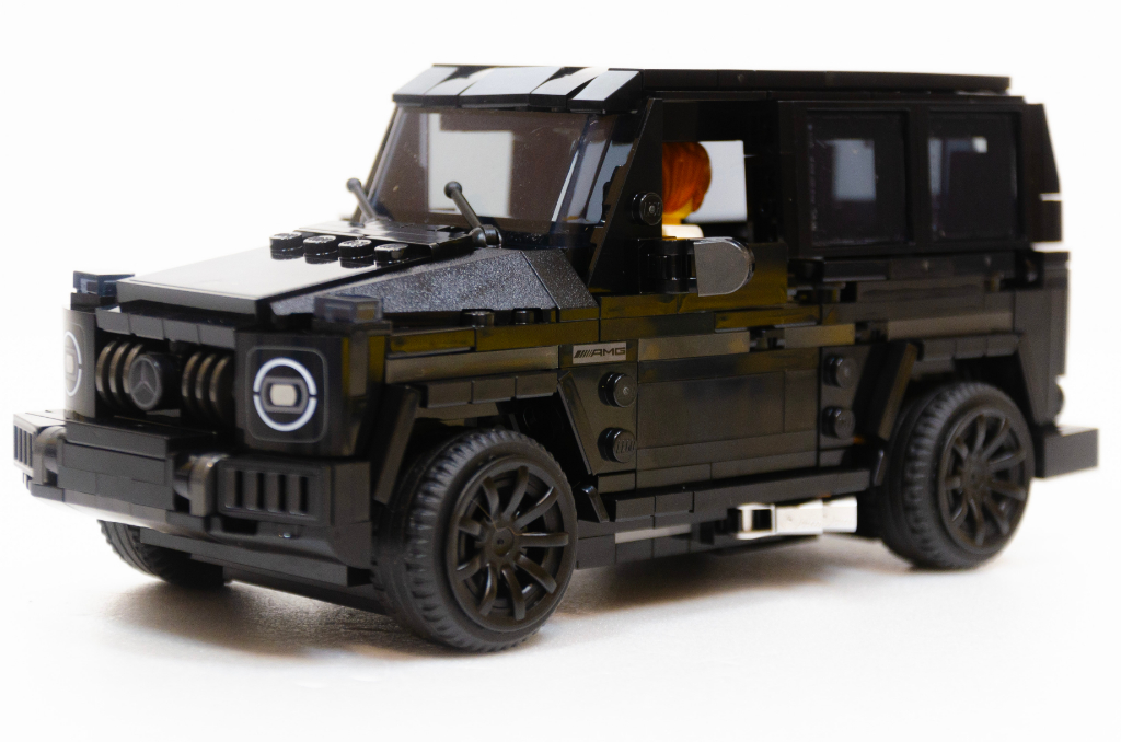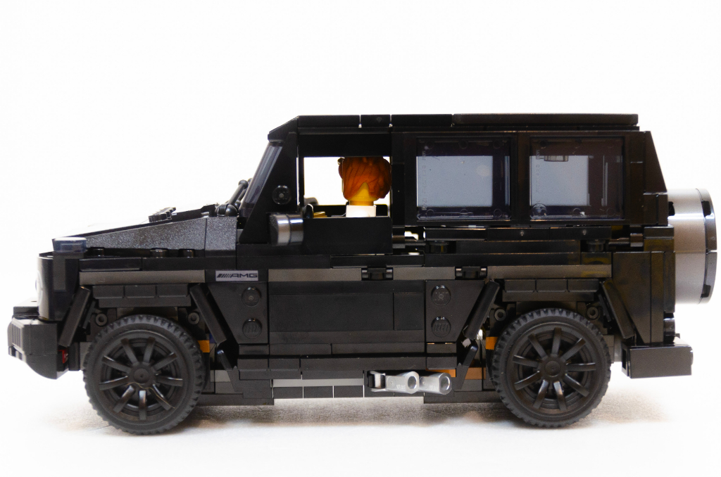 Parlons de mon chouchou, déjà dans notre monde je suis assez fan de ce véhicule par son côté aberrant. Un monstre lourd, avec un coefficient de pénétration dans l’air digne d’un bus, qui a un design intemporel et dans lequel Mercedes a collé un moteur tout aussi aberrant … bref un « bonheur » de véhicule raisonnable. Je reviens sur la version LEGO et vu le design à la règle du véhicule réel, sa version LEGO lui est très fidèle. Par contre, il est sombre, c’est une masse noire de laquelle ne ressort pas grand chose. Quitte à faire kékosse, une couleur plus criarde aurait fait ressortir les lignes. Je lui reproche aussi quelques « trous » dans les jonctions hautes.