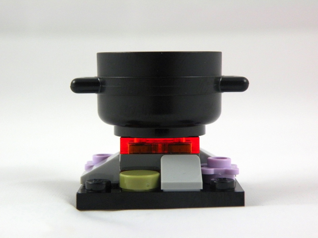 Une dizaine de minutes suffisent à venir à bout du modèle et de ses 145 pièces. Comme d’habitude dans ces petits sets saisonniers, on assemble différents éléments afin de recréer une petite saynète. On commence ici par le chaudron (réalisé à base d’une pièce de la gamme Fabuland !), qui repose sur un feu simulé par quelques slopes et deux plates en trans-orange.