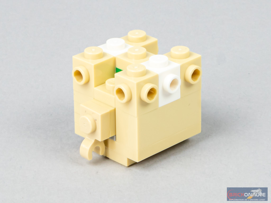 La conception du petit est un peu plus simple. Il est construit sur une base de 3×3 tenons, et des éléments SNOT servent comme d’habitude à constituer la structure interne de la tête. Les bajoues sont évidemment moins prononcées et simplement constituées de petits dômes blancs.