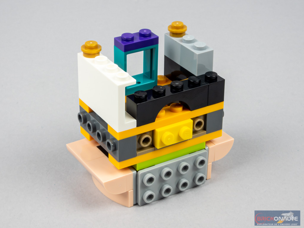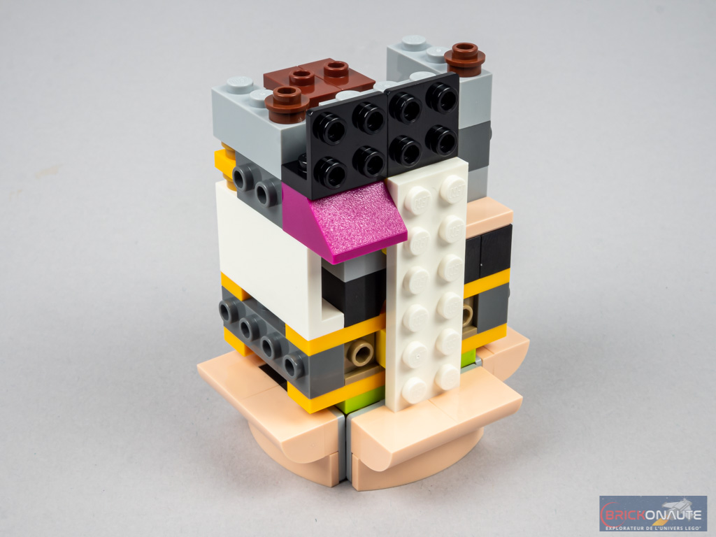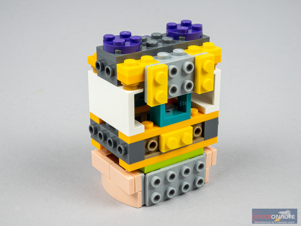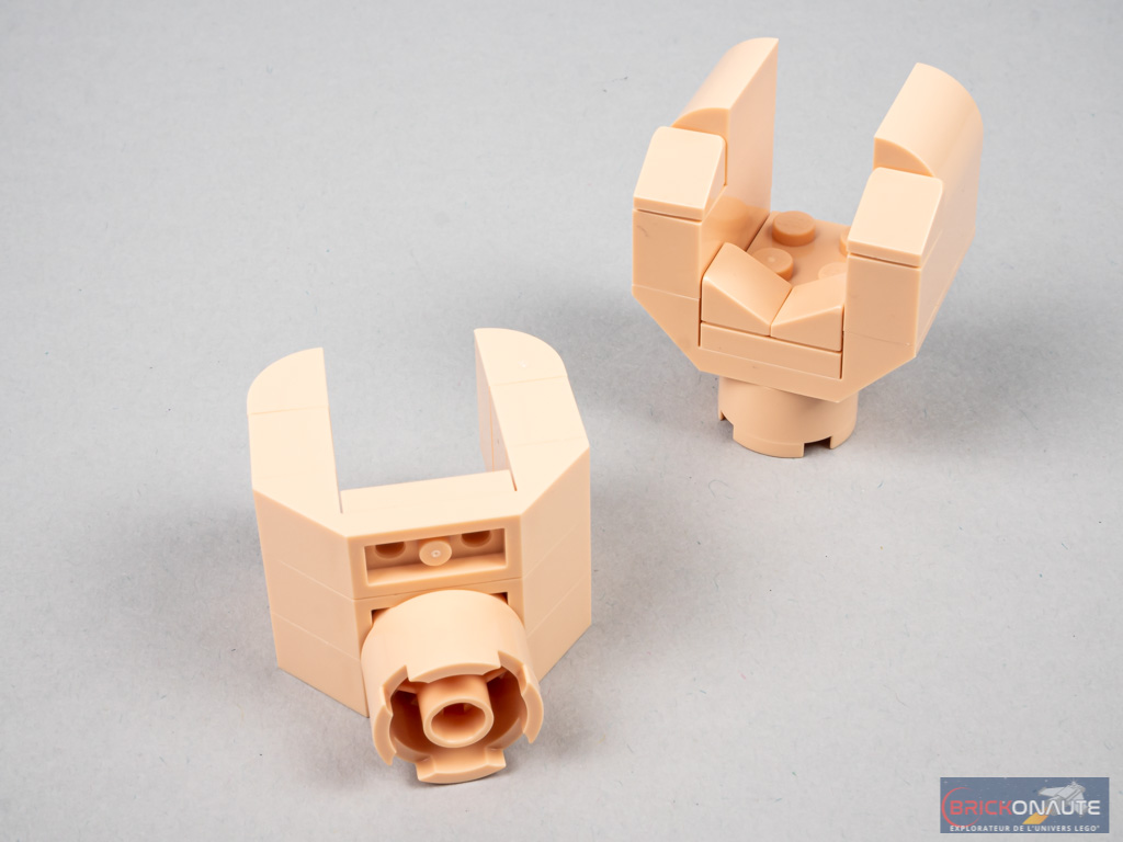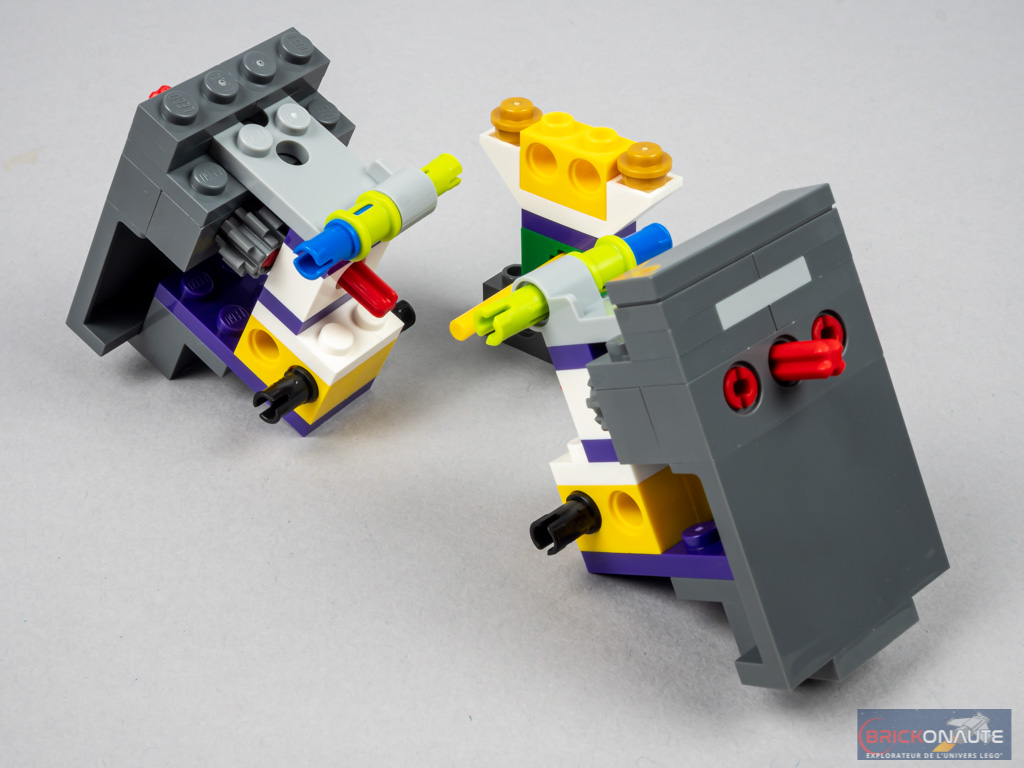 La construction est logiquement répétitive pour le second personnage, sa conception étant très similaire à celle du premier. Mais pour celui-ci, la surprise est vraiment au rendez-vous et on retiendra quelques techniques de construction intéressantes. Le bon moyen pour ne pas tomber dans la monotonie est sans doute de partager la construction avec quelqu’un : LEGO fournit deux notices d’instructions et les sachets sont numérotés.