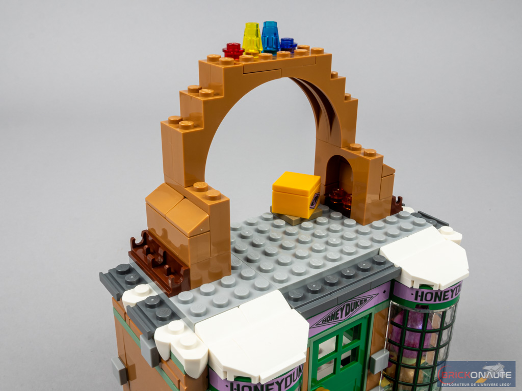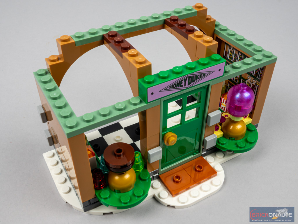 - nombre d’étapes de construction : 121 pour Honeydukes, 163 pour les Trois Balais