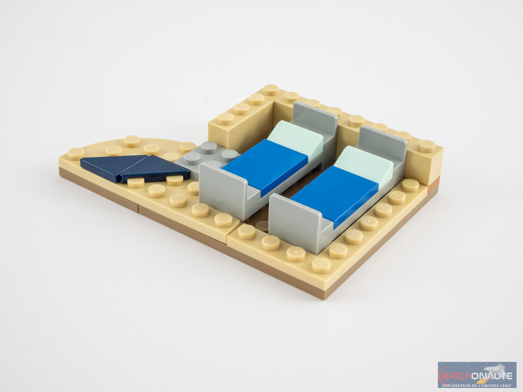 L’expérience de construction est globalement intéressante et l’on ne s’ennuie pas au fil des étapes de construction. On ne voit pas passer les 2 heures 30 – 3 heures qui nous permettent de terminer la construction : les techniques de construction sont variées, et instructives, notamment dans la manière de réaliser les différentes toitures. Et la monotonie ne s’installe jamais : on alterne l’empilement de briques pour les façades avec l’aménagement intérieur, puis la construction des toitures, etc. Seul regret, malheureusement récurrent dans la gamme : les autocollants. Ils sont parfois assez grands, d’autres fois à appliquer à l’intérieur d’un panneau… bref, ils ne sont pas toujours faciles à coller et nuisent à l’expérience globale.