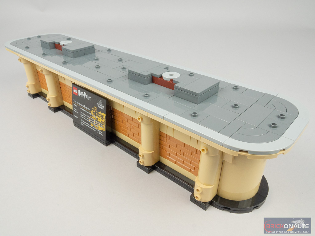 Petit « coup de gueule » malgré tout – et c’est dommage de devoir le répéter à tout bout de champ : les autocollants n’ont rien à faire dans une boîte proposée à ce tarif. Surtout que certains ne sont pas spécialement faciles à appliquer, sur des pièces circulaires ou arrondies. Les couleurs des autocollants sont, une fois n’est pas coutume, plutôt raccord avec les pièces qu’ils couvrent mais bon, ça n’excuse rien. Un petit truc qui m’a bien fait rire : le petit « TM » à côté du numéro 9 ¾ – c’est moche mais LEGO n’avait probablement pas le choix. Un autre truc m’a moins fait rire : les deux erreurs sur la plaque signalétique. La gare de King’s Cross perd ainsi son « s » pour se transformer en « King Cross », tandis que le modèle de locomotive mentionné n’est pas le bon (GWR 5900 au lieu de 4900)