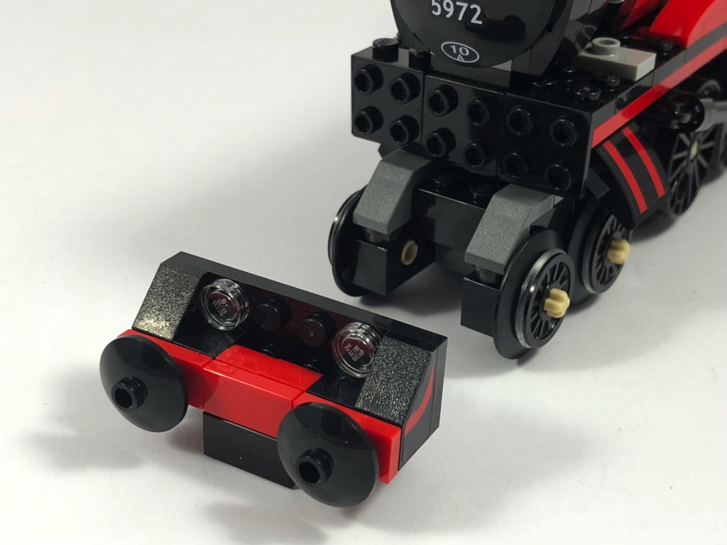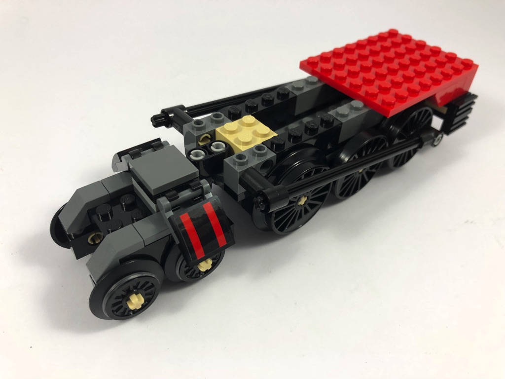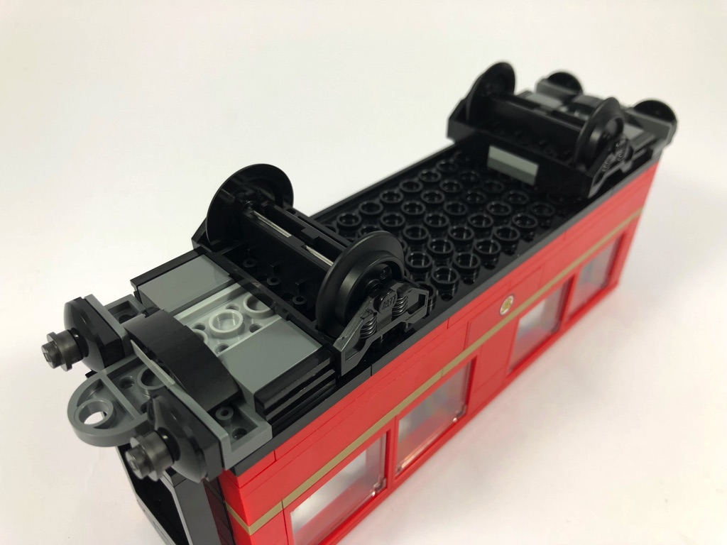 Le train est joliment réalisé, avec tout juste ce qu’il faut de détails. On notera simplement qu’il ne dispose pas de chauffeur. Je ne suis pas allé vérifier, mais il s’agit peut-être d’un train magique qui n’en a pas besoin, après tout ! Il n’est cependant pas motorisé, mais les MOCeurs talentueux n’ont pas tardé à trouver une solution, comme le prouve cette vidéo de JangBricks. Dommage que LEGO n’ait pas prévu cette option d’emblée.