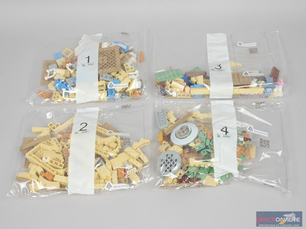 À l’intérieur de la boîte, nous trouvons 4 sachets de pièces numérotés, une petite planche de 3 autocollants, et une notice d’instructions de 80 pages.