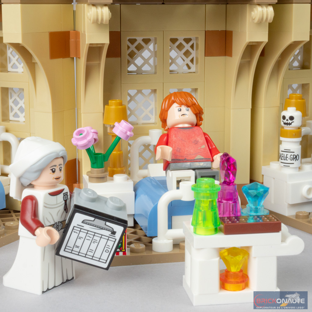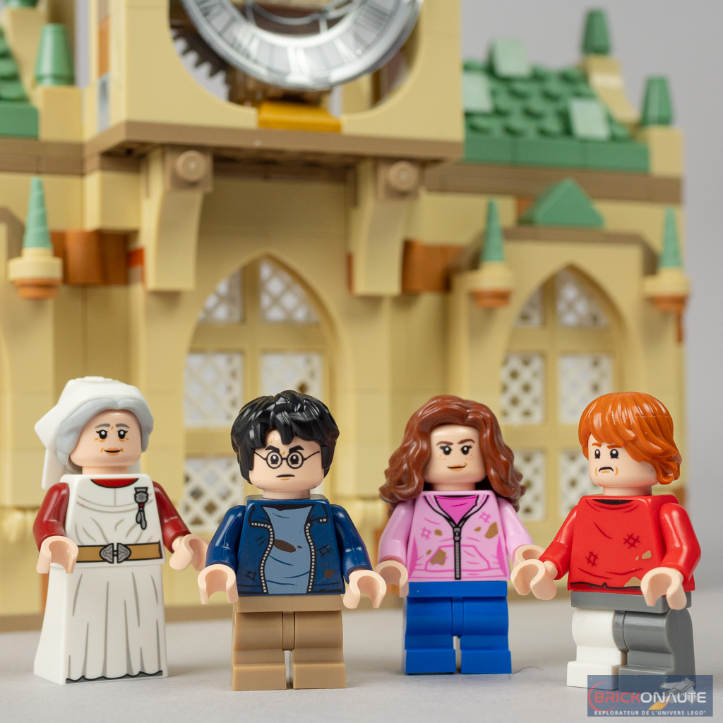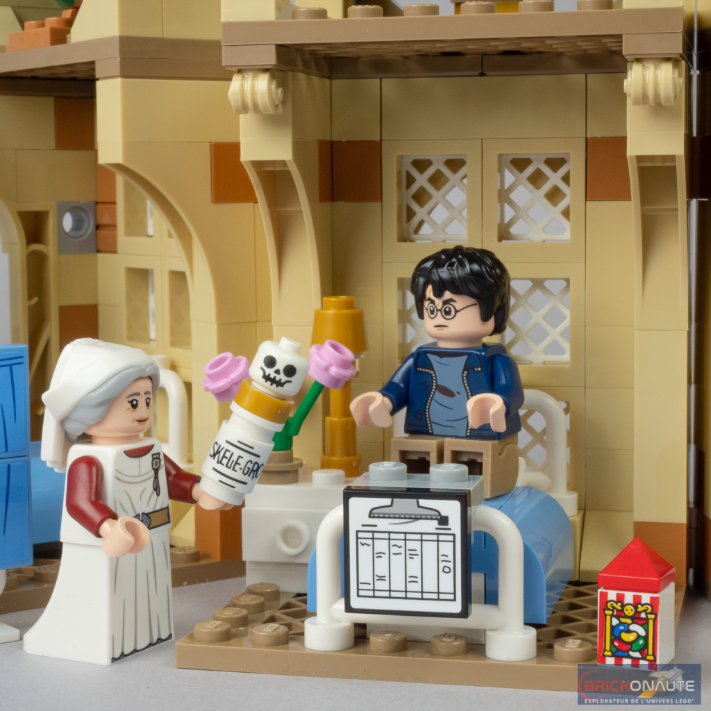 Les collectionneurs apprécieront que la boîte contienne 4 minifigs inédites – les 3 héros étant présentés dans une version « salie » de leurs tenues vues dans le set 75947 Hagrid’s Hut: Buckbeak’s Rescue – et madame Pomfresh (et sa superbe coiffe) étant une toute nouvelle minifig dans la gamme LEGO Harry Potter.