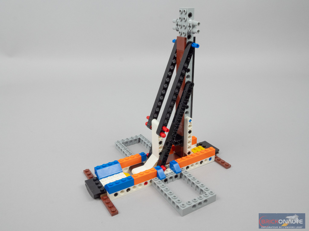 Le modèle terminé risque de peser son poids, on s’attaque donc ensuite à une structure Technic telle qu’on la trouve souvent dans les « gros » sets. Des cadres assurent une surface d’assise importante, et la structure verticale est retenue par des beams.