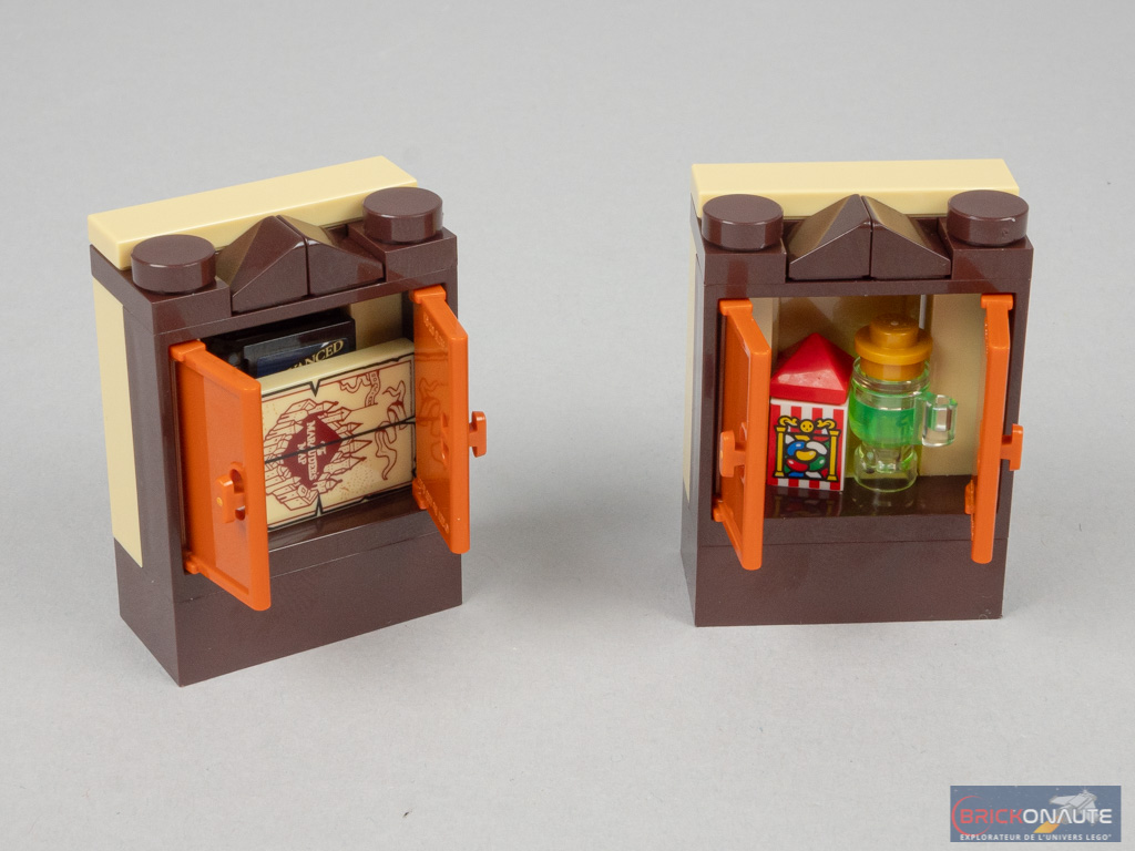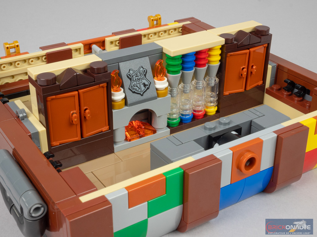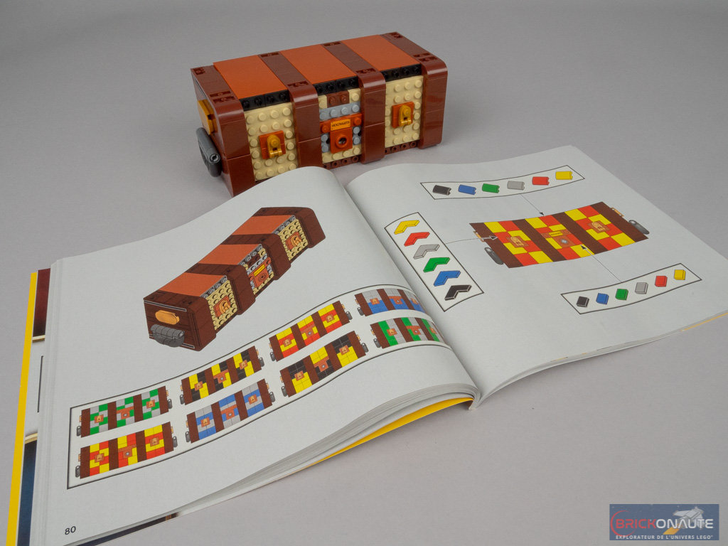 Avec, pour commencer, le même défaut que dans la série de « livres-classes » de la même gamme (et nous reparlerons des deux nouveaux sous peu) : il est très difficile de transporter les minifigs dans la malle et tous les éléments de personnalisation. Elle est déjà bien pleine avec les différents accessoires fournis.