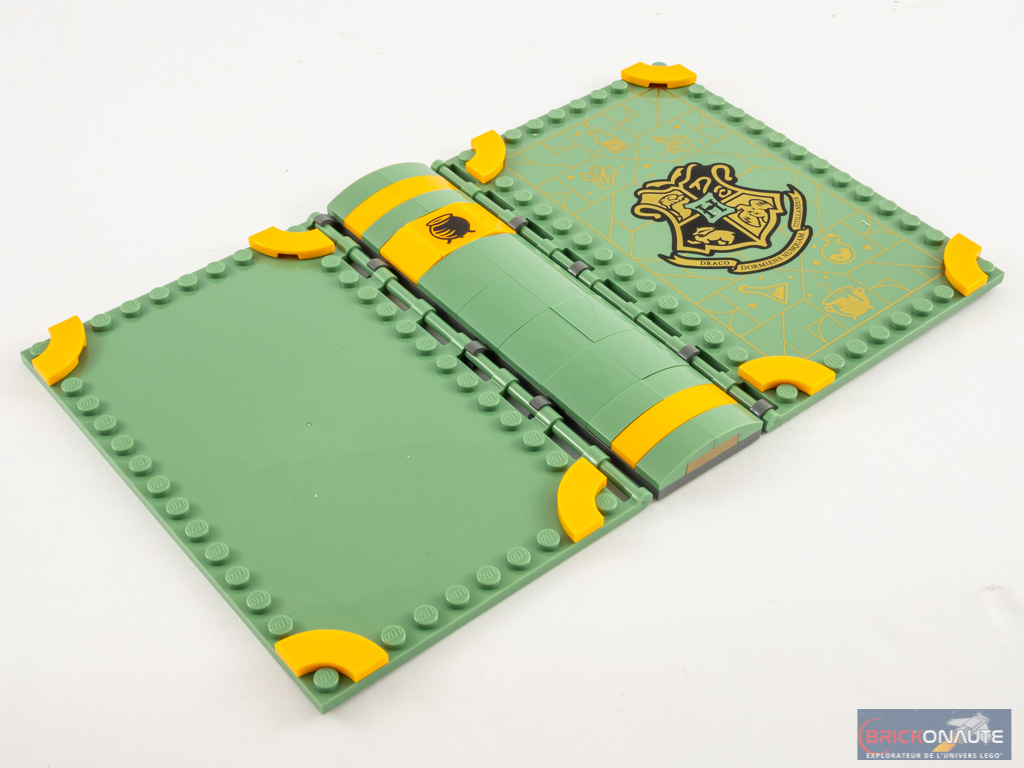 Comme vous avez pu le voir juste au-dessus, ce set est vraiment différent dans sa conception par rapport au set 76382. En effet, le décor « principal » est ici fixé sur la tranche du livre. La deuxième de couverture reste donc totalement vierge à l’exception de 2 autocollants. Ceci apporte un peu de variété bienvenue, dans une gamme où la facilité aurait été de proposer 4 livres conçus de la même manière. C’est d’ailleurs pour cela que j’ai préféré vous présenter ces 4 livres indépendamment – ils sont suffisamment différents pour cela.