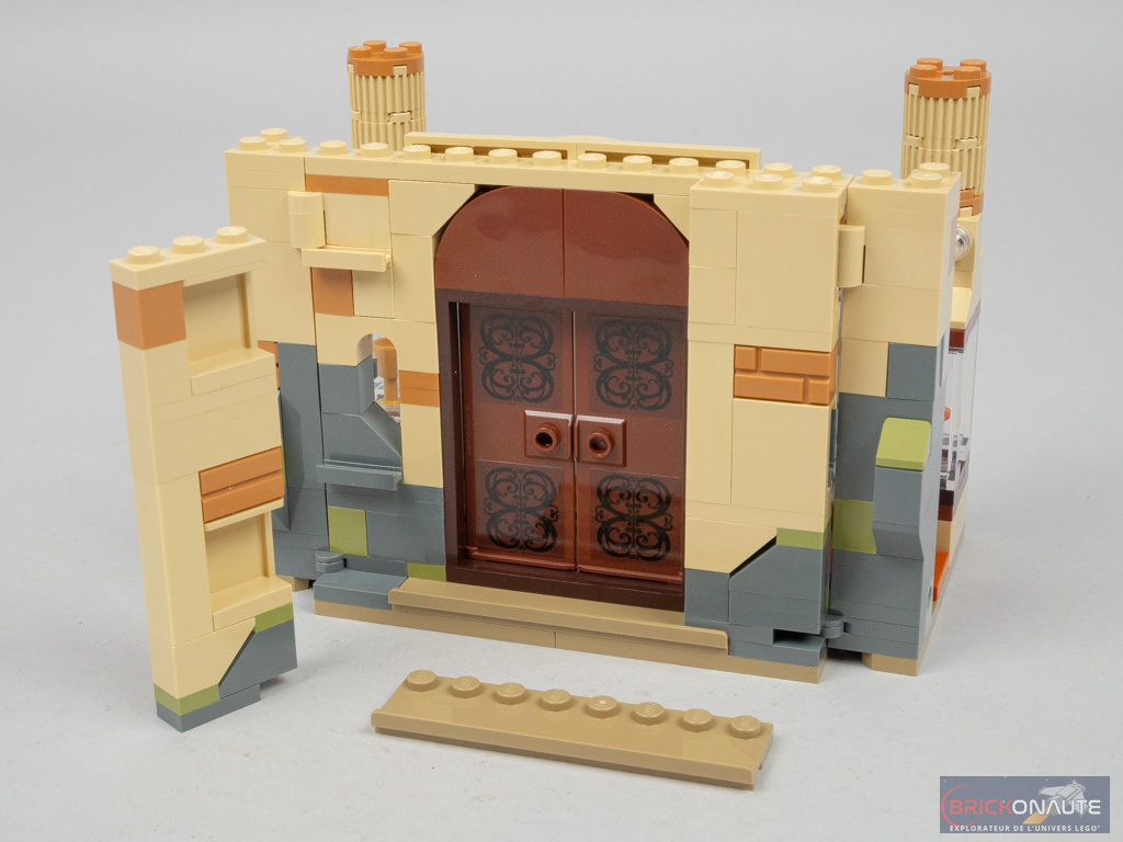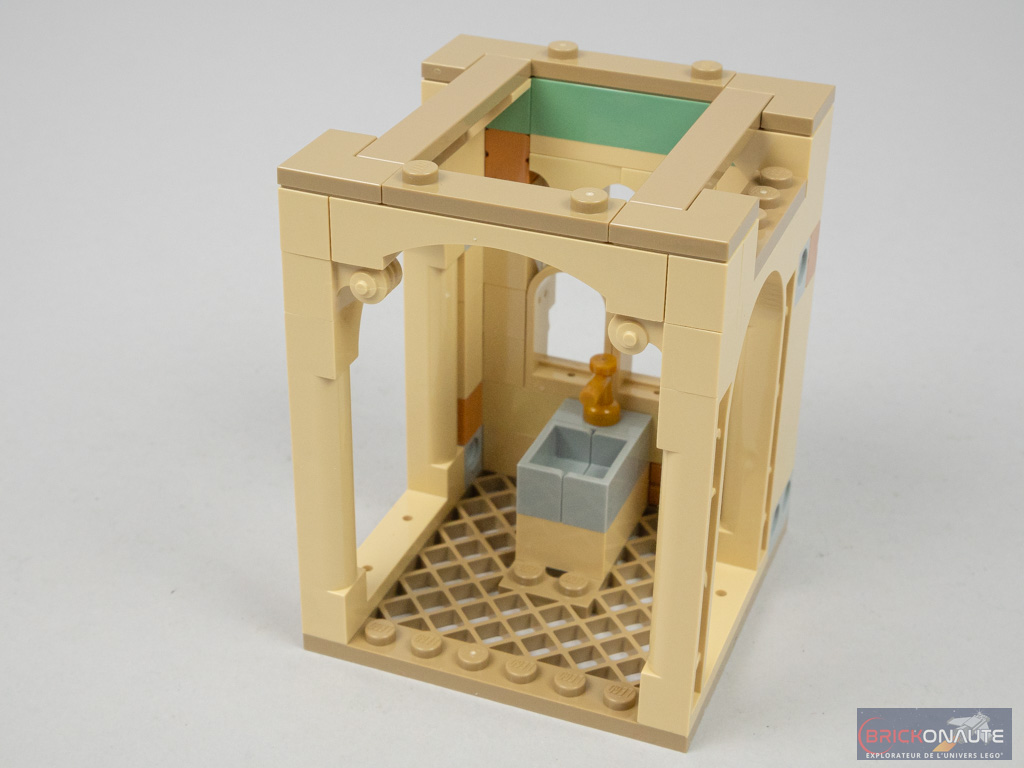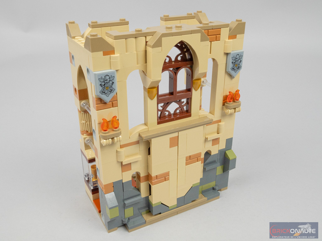 À la manière du set 76402 Hogwarts: Dumbledore’s Office sorti l’an dernier, LEGO a prévu la possibilité d’ouvrir la partie principale de la construction afin d’offrir un espace de jouabilité plus important – c’est une très bonne idée si on choisit de ne pas intégrer cette boîte à un ensemble plus grand et cela permet donc à cette référence de se suffire à elle-même. Évidemment, ce set est aussi conçu pour pouvoir s’ajouter à un gros château de Poudlard modulaire avec des dimensions et des fixations adaptées.