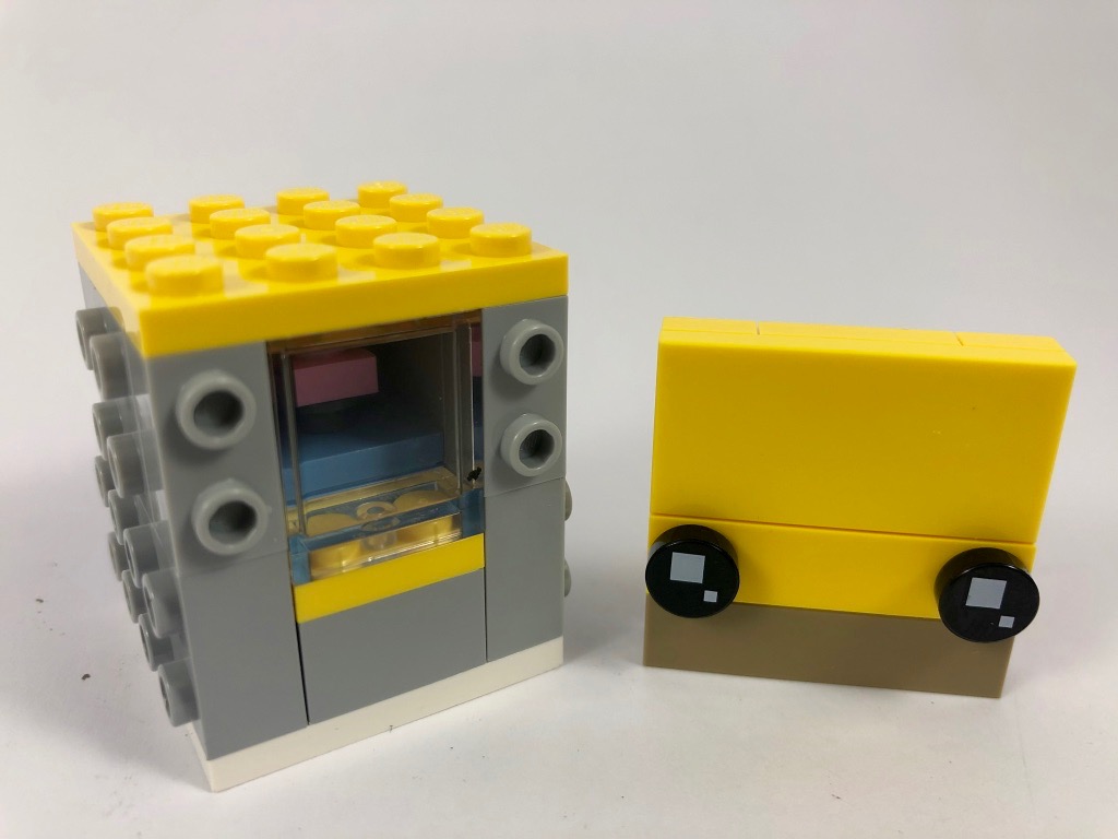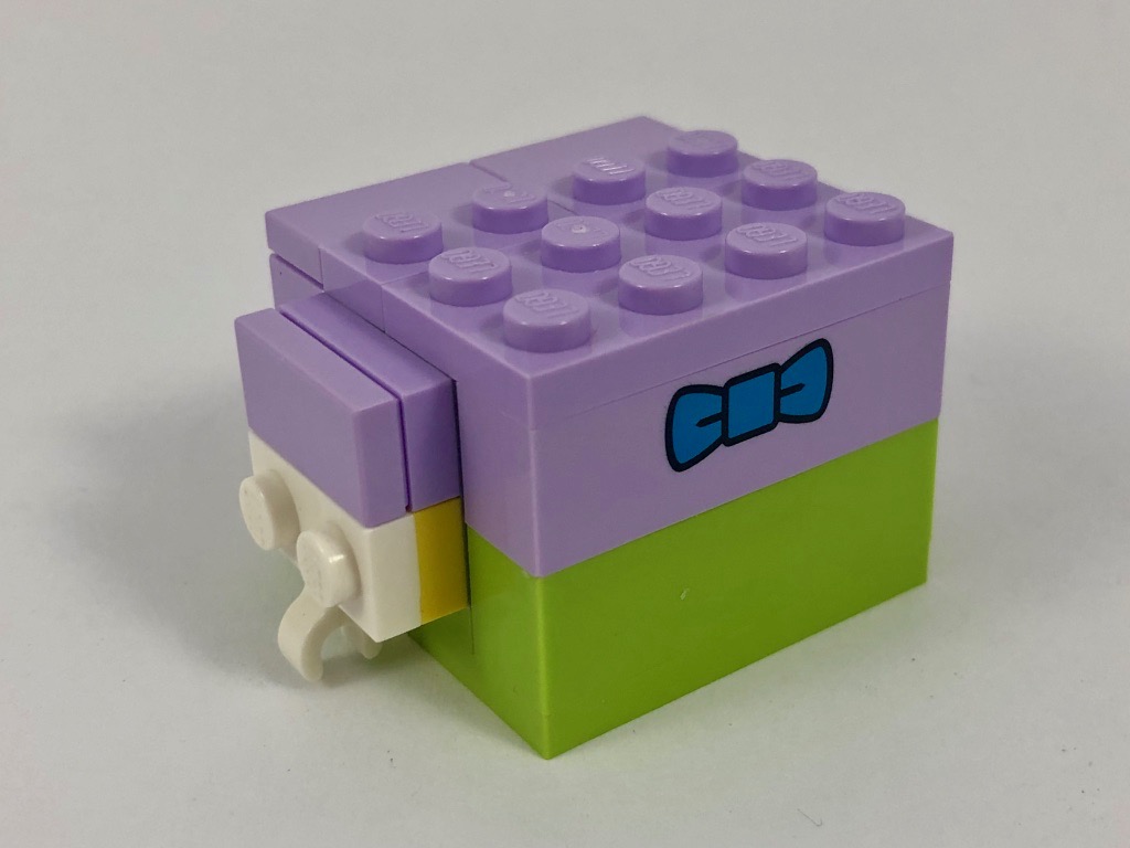 Le design des deux personnages parvient à capturer les éléments essentiels qui caractérisent chacun d’eux. Les détails sont présents, depuis les grandes chaussures et le noeud papillon de Krusty jusqu’à la chevelure en zigzag d’Homer. Et, s’agissant de personnages de dessin animé, les tenons apparents sur le haut du crâne sont ici tout à fait acceptables. J’aurais par contre préféré trouver des yeux autres que les yeux BrickHeadz « standards », de manière à coller plus fidèlement aux yeux globuleux des deux protagonistes.