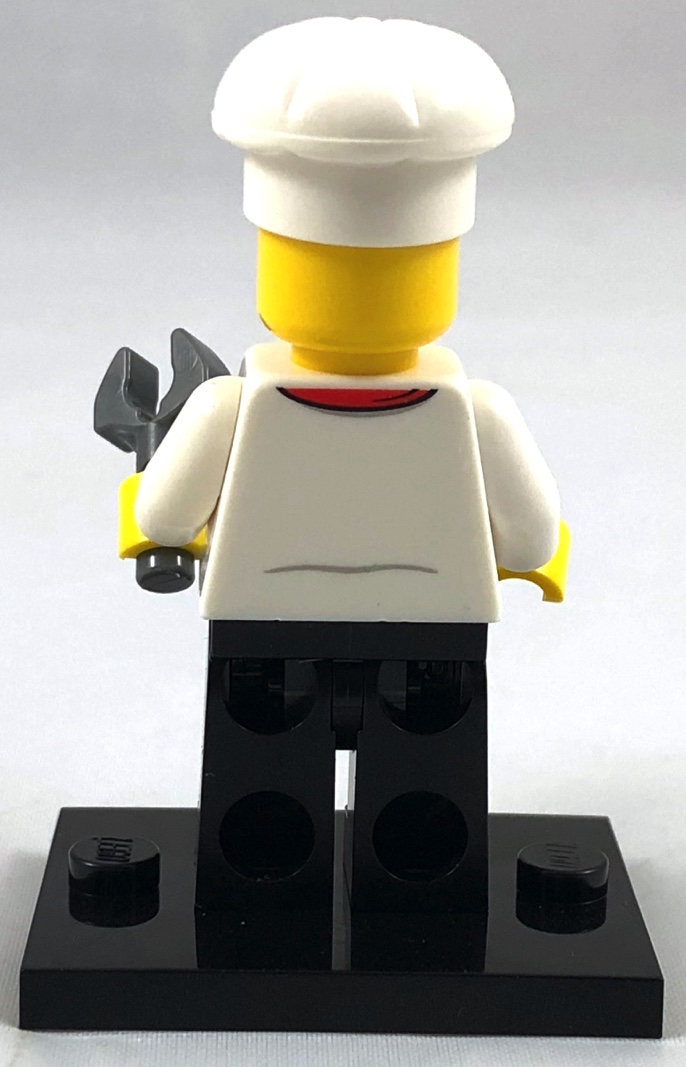 Atout indéniable de ce polybag : la présence d’une minifig plutôt réussie. Notre vendeur de hot-dogs porte une veste de chef surmontée d’un foulard rouge, tampographiée des deux côtés. Au dessus de son visage moustachu, il porte une toque de cuisinier. Enfin, il dispose d’une pince afin de pouvoir servir correctement les hot-dogs. A noter que cette tête n’apparaît que dans 6 autres sets, et reste donc relativement rare.