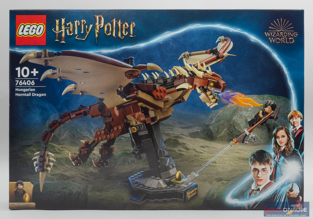 Après les sets 75979 Hedwig (2020) et 76394 Fawkes, Dumbledore’s Phoenix (2021), LEGO continue sa collection des volatiles mécaniques avec un set un peu particulier, puisqu’il ne s’agit plus d’un oiseau mais d’un dragon ! Je vous propose de découvrir aujourd’hui le set LEGO Harry Potter 76406 Hungarian Horntail Dragon, ou Le Magyar à Pointes en VF. À noter que l’interprétation la plus récente chez LEGO dudit dragon date de 2019, avec le set 75946 Hungarian Horntail Triwizard Challenge.