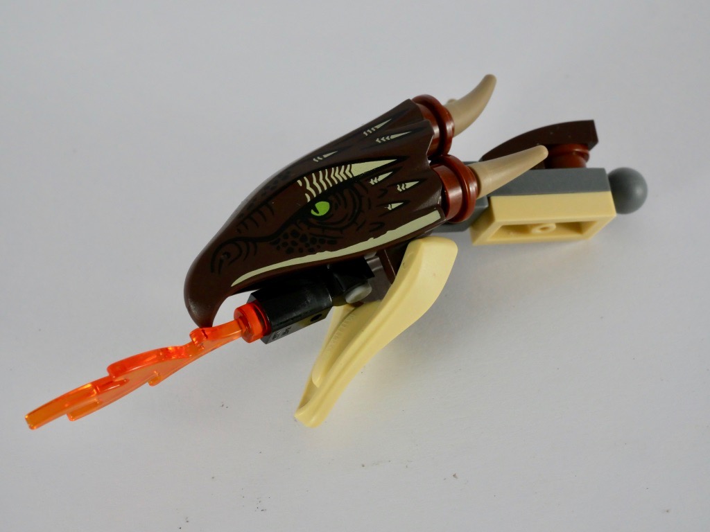 J’imagine que le designer de ce set a été confronté à un choix difficile : privilégier la jouabilité au détriment du design. Je m’explique. En termes de jouabilité, c’est un quasi sans-faute : quatre minifigs avec chacune une expression alternative, un dragon articulé auquel on pourra donner des positions très variées, et une tente « déployable » qui donne un lieu de vie aux différents protagonistes.