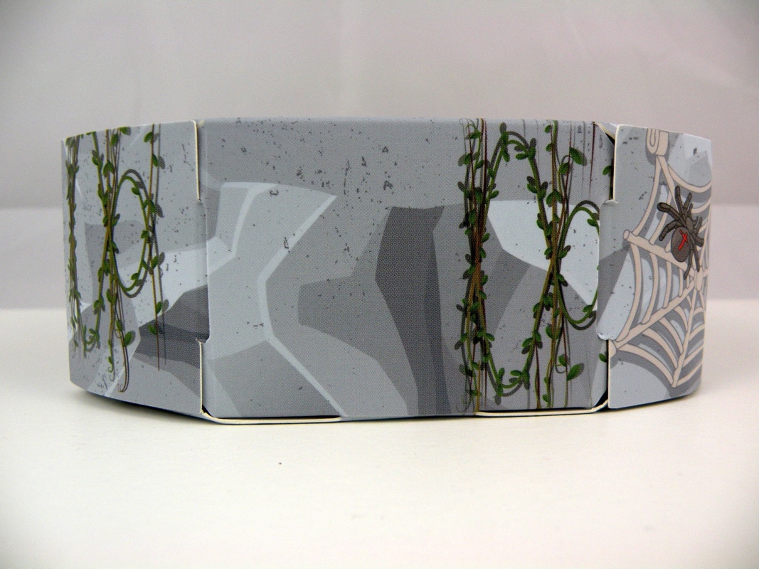 Le set se présente sous la forme d’une grotte en carton insérée dans un fourreau jaune, qui possède sur l’avant l’illustration de cette grotte avec les 2 protagonistes devant, tandis qu’on retrouve les sempiternelles mentions légales sur le côté et sur l’arrière.