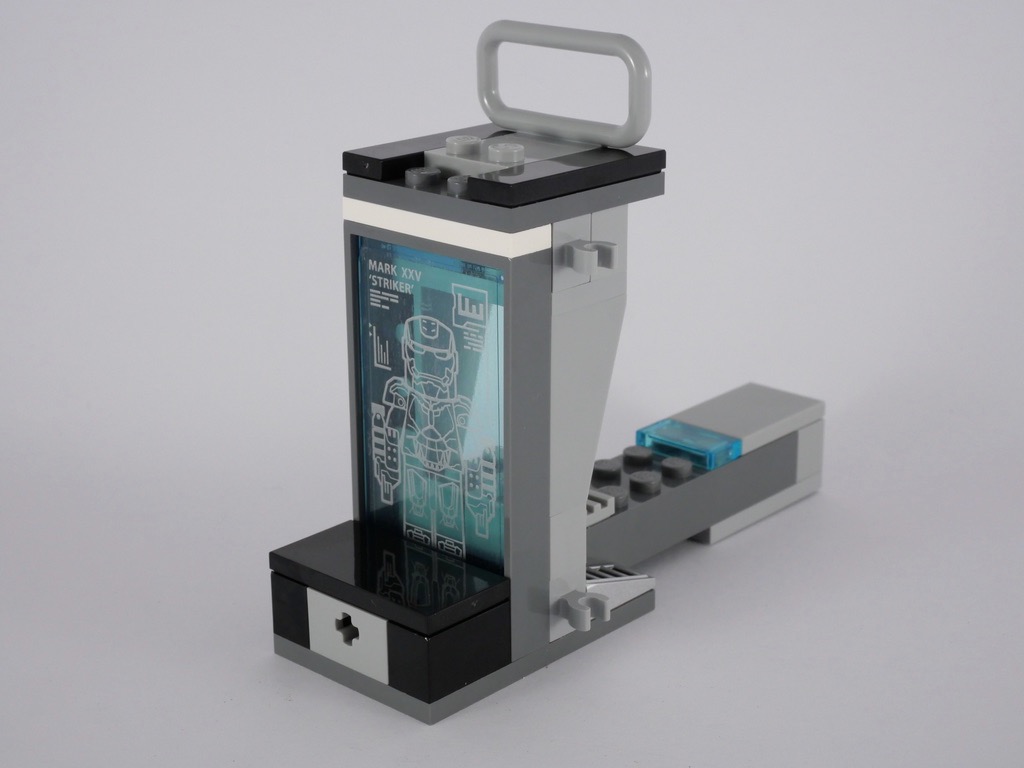 LEGO nous propose, en plus de ces modules, quelques éléments de jouabilité supplémentaires. On notera la plateforme centrale rotative, le bureau et ses ordinateurs et les différents éléments décoratifs. Mais on appréciera surtout la présence du robot Igor (MK38). Complètement articulé, y compris au niveau des coudes et des genoux, on peut y placer Tony Stark aux commandes. Et le mettre dans des situations très variées. Si la salle des armures est un pur produit d’exposition, ces quelques éléments complémentaires apportent leur dose de jouabilité bienvenue.