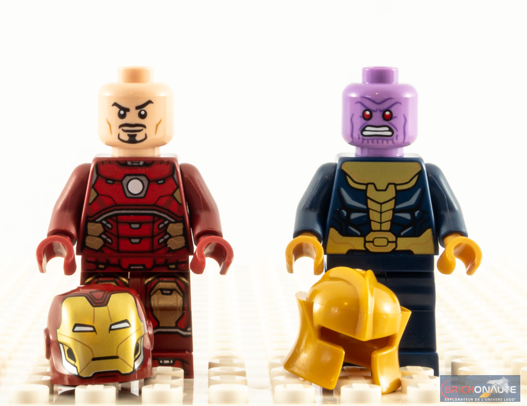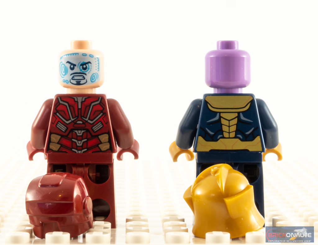 La minifig de Thanos est, pour sa part, (presque) identique à celle du set 76141 Thanos Mech, à une exception près : les jambes sont ici monochromes. C’est propre, mais c’est un peu dommage de ne pas avoir fourni de jambes tampographiées également.