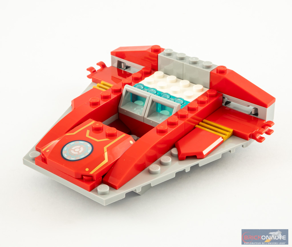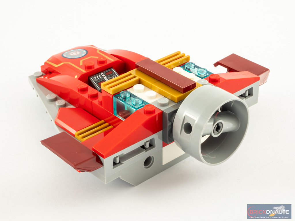 La minifig d’Iron Man et son casque monobloc est celle que l’on peut déjà trouver dans une demi-douzaine de sets depuis l’année dernière. Il n’empêche qu’elle est très bien finie, avec une tampographie jusqu’au bout des pieds. Je ne comprends par contre toujours pas l’intérêt de tampographier un HUD sur la tête de Tony Stark, étant donné qu’il est impossible de retirer juste la face du casque.