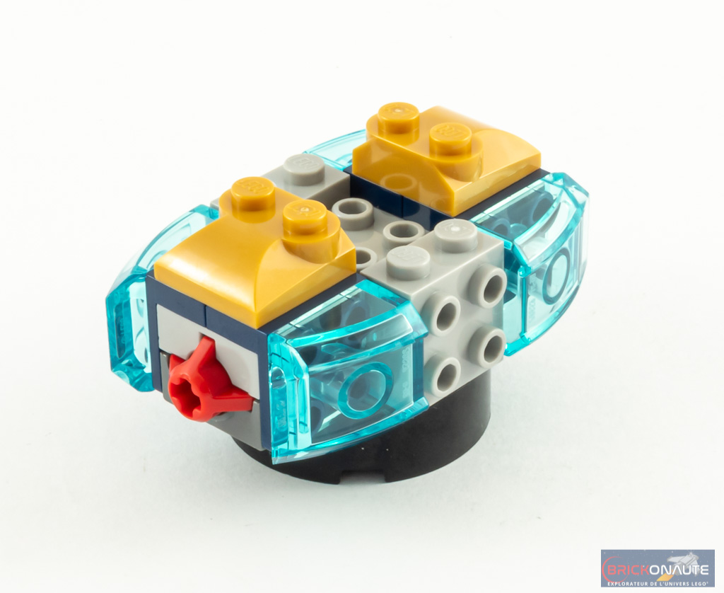 En termes de design, c’est forcément sommaire étant donné l’inventaire réduit et difficile de trouver à quelle scène de film le set pourrait faire référence. Ce n’est d’ailleurs pas la prétention de cette boîte. Si on considère cette référence pour ce qu’elle est avant tout, un jouet, ça fonctionne bien. Les formes et les couleurs sont sympas et le vaisseau est rigolo même s’il est peut-être un peu « plat ».