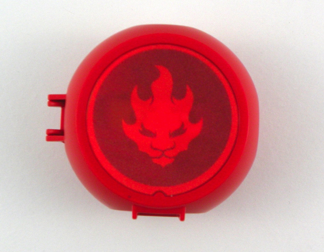 La capsule en elle-même est sympathique puisque nous avons droit à un hologramme sur sa face avant, alternant entre un visage avec une cagoule rouge et un blason.