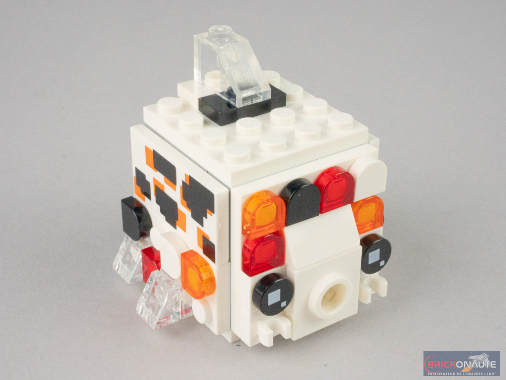 Et voilà, nous avons désormais deux nouvelles bestioles à ajouter dans notre aquarium LEGO BrickHeadz, où ils pourront tenir compagnie aux poissons rouges du set 40442 Goldfish. Si j’étais plutôt conquis par ces derniers (mon test par ici), je suis moins emballé par ces carpes. Pour une raison simple : j’ai du mal à comprendre l’utilisation conjointe d’une tile tampographiée en partie haute du corps, et de petites tiles translucides pour les écailles du bas. J’aurais préféré voir le corps couvert d’écailles, ç’aurait été plus cohérent.