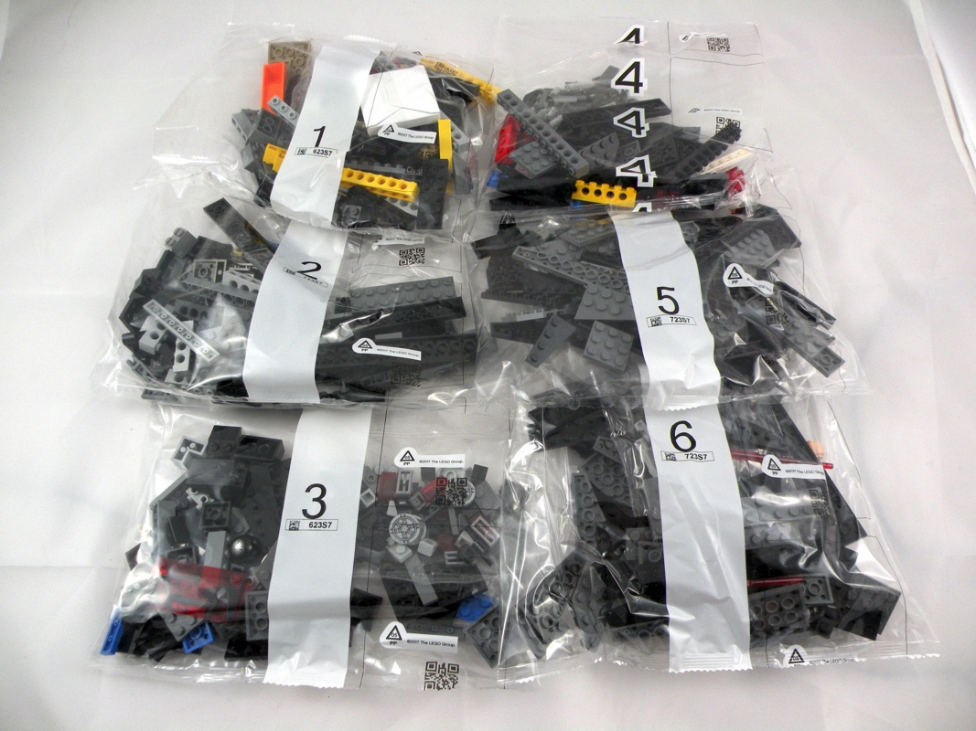 A l’intérieur de la boîte, à l’instar de BB-8 dont nous parlions avant-hier, 6 sachets de pièces numérotés de 1 à 6, donc avec 630 pièces au compteur tout tri s’avèrera inutile. Nous avons également une notice d’instructions (84 pages) et une planche de deux stickers, raisonnable.