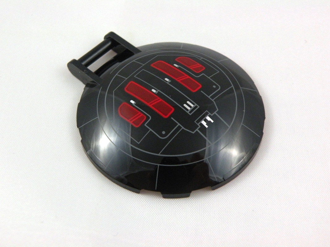 Il semble s’agir du « double maléfique » de notre très cher BB-8. Au niveau de la forme générale, seule la tête (un cône tronqué) varie par rapport à BB-8. Les gabarits des deux robots semblent identiques. La réalisation est soignée, aussi bien au niveau du « corps » avec 4 faces différentes, que de la tête, où l’on regrettera cependant que la tampographie ne fasse pas tout le tour, avec deux interruptions de part et d’autre.