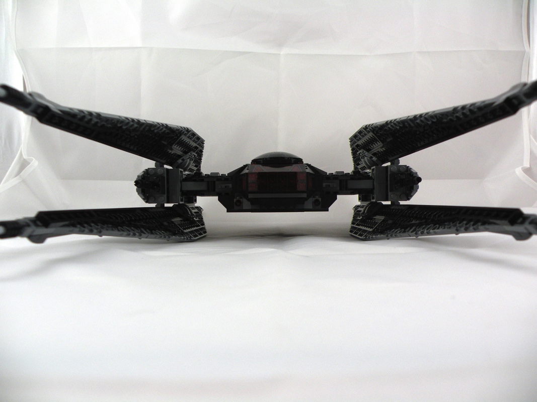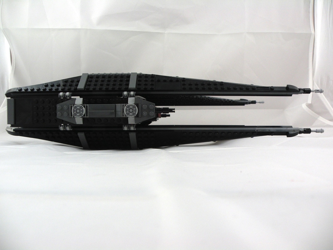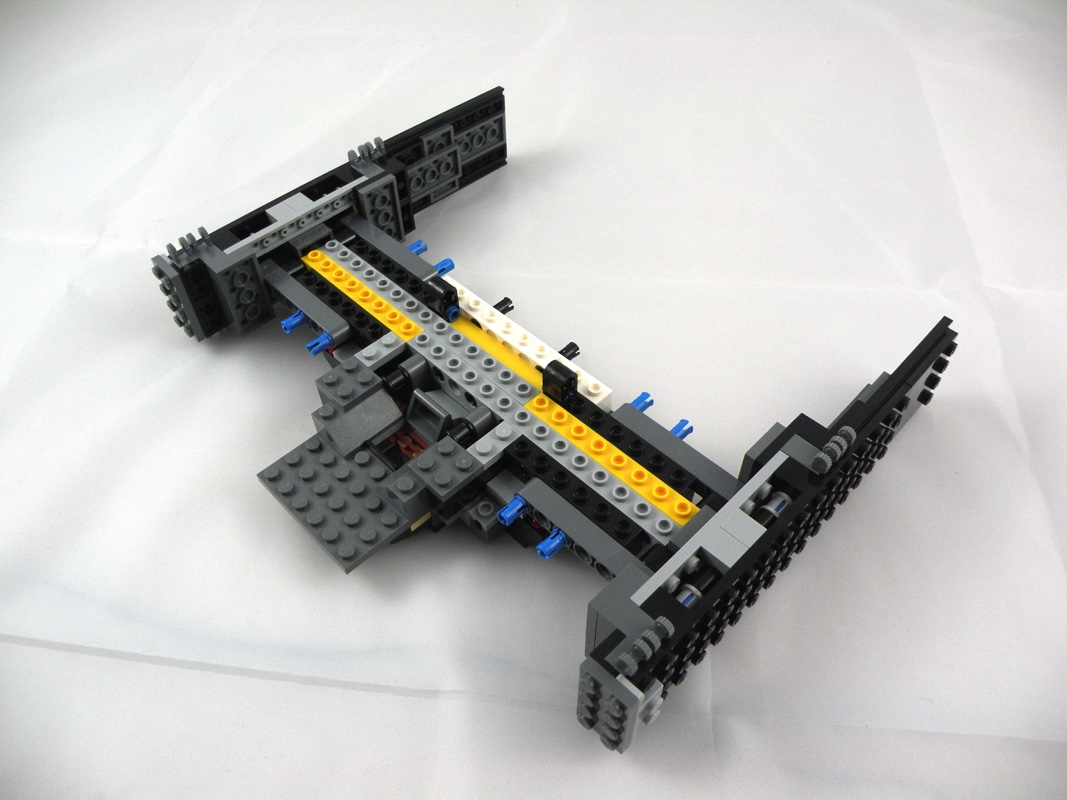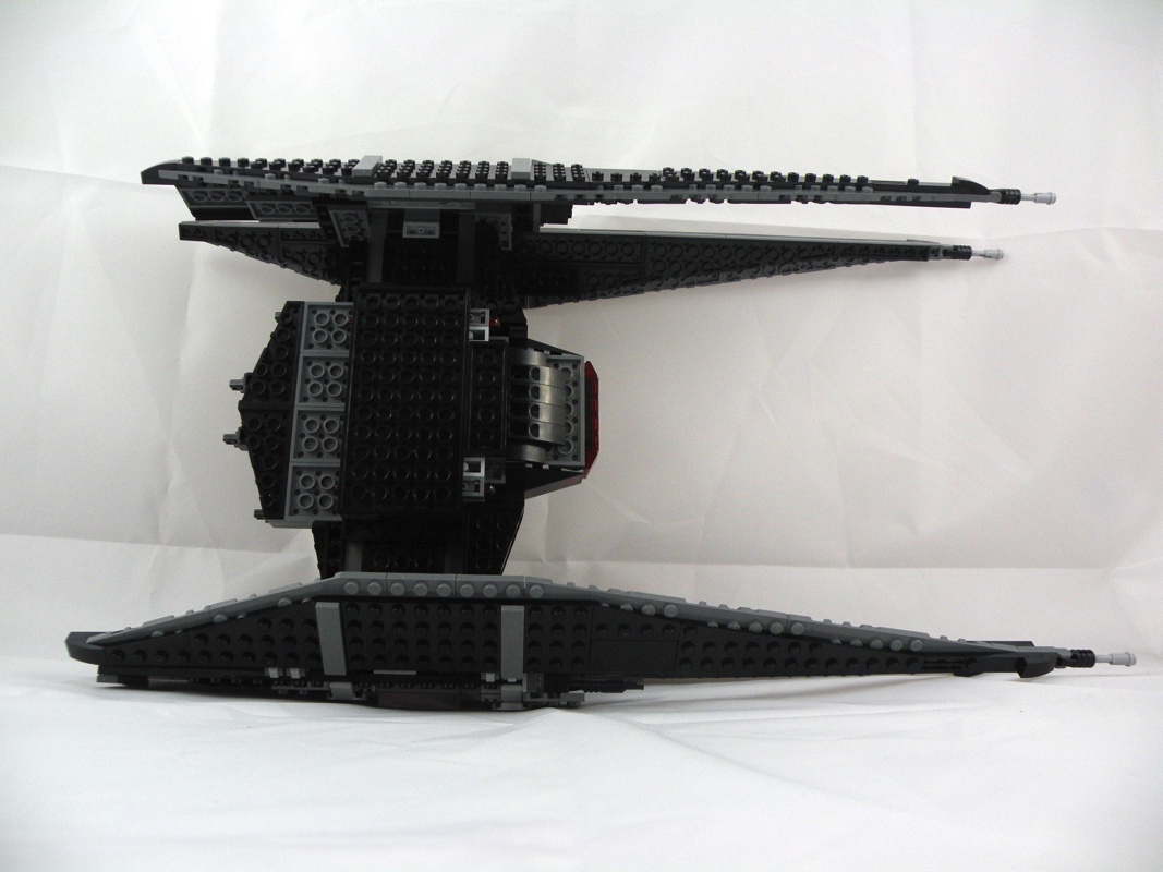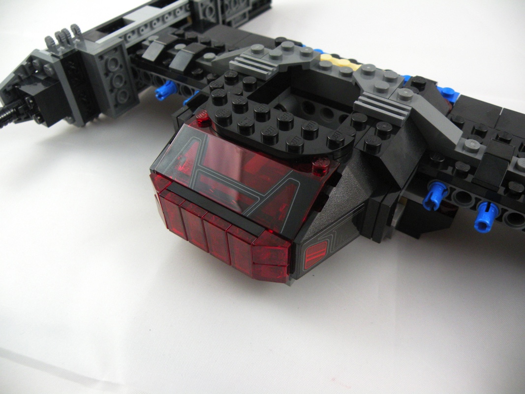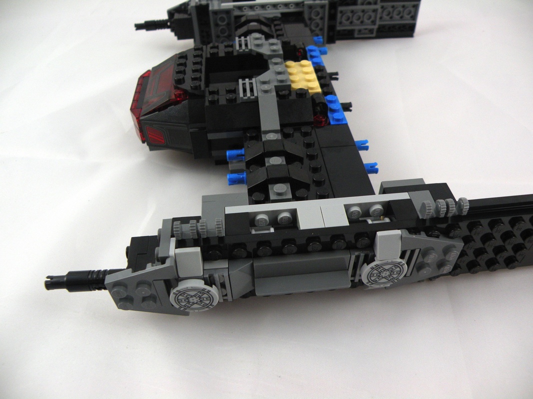 - L’esthétique de l’intérieur des ailes, et du dessous du vaisseau, est complètement bâclée : aucun élément de décor, on ne voit que le dessous des plates ayant servi à l’assemblage des divers éléments. Dans la même optique, des pins Technic bleus sont visibles sur l’arrière du vaisseau, un camouflage à l’aide de tiles, facilement réalisable, aurait été bienvenu…