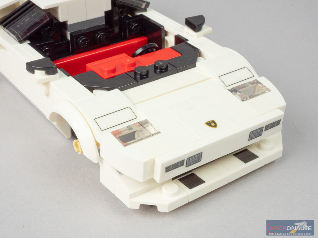 Avec ses formes anguleuses, la Lamborghini Countach semblait particulièrement adaptée à une conversion dans la gamme LEGO Speed Champions. Et LEGO nous le prouve avec ce modèle, qui propose un design à la hauteur des espérances. Hormis les portières en élytre, pour ainsi dire impossibles à reproduire à cette échelle, on retrouve (presque) tous les éléments qui rendent cette voiture si particulière.