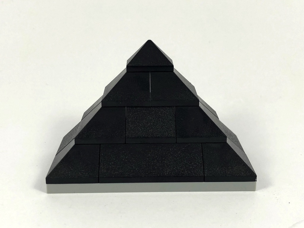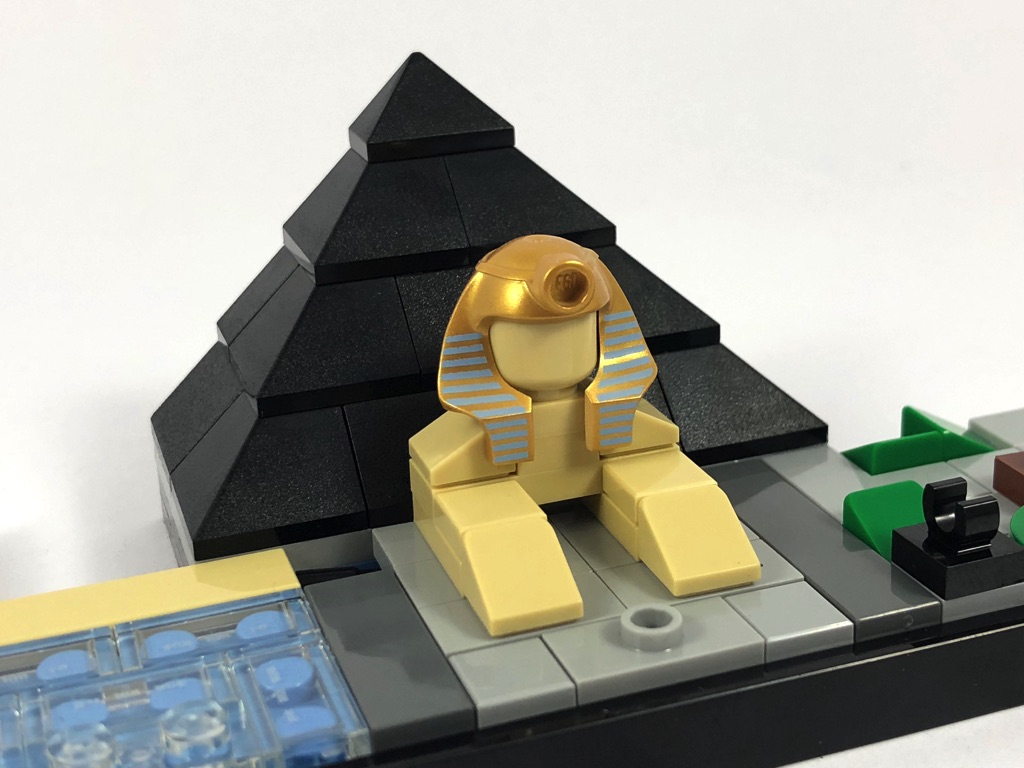 Nous continuons avec le Luxor. Rien de très compliqué ici, la pyramide est une superposition de slopes grises. Le sphinx de l’entrée est également représenté assez simplement, et porte le « chapeau » de pharaon tampographié (absolument magnifique, soit dit en passant).
