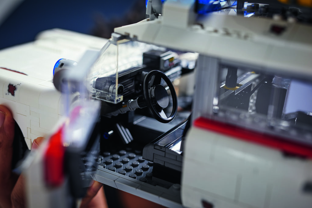 Si la voiture n’a pas foncièrement changé depuis les années 80, la version présentée ici s’inspire de celle vue dans le prochain film de la saga intitulé Ghostbusters: Afterlife (SOS Fantômes : L’Héritage en VF). Celui-ci a été repoussé à l’année prochaine pour les raisons que nous connaissons, mais LEGO a décidé de ne pas retarder la sortie de cette boîte.