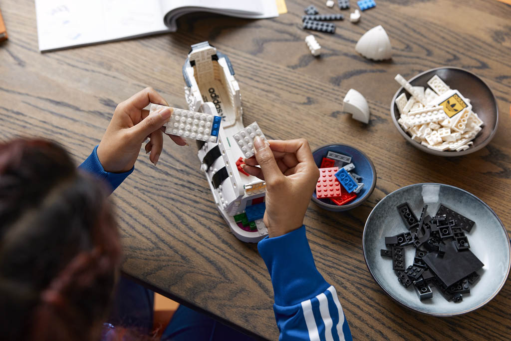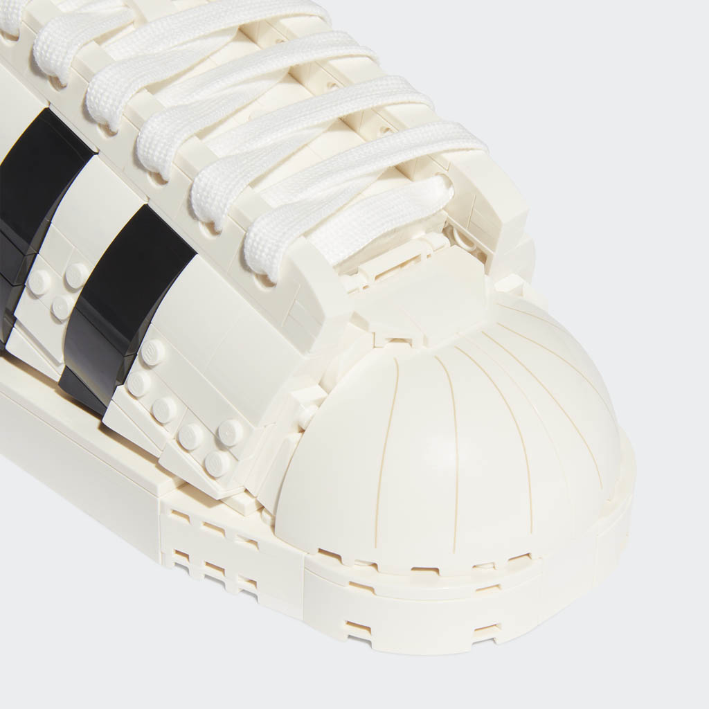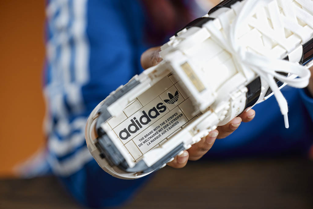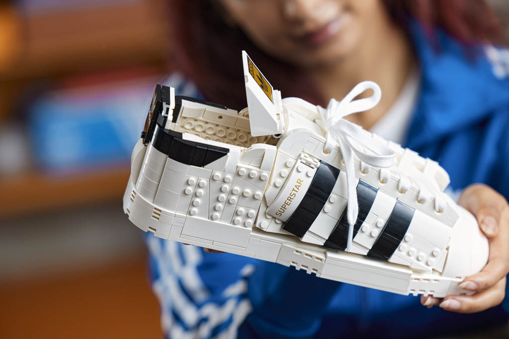 Petit aparté : adidas profite de l’occasion pour dévoiler également un nouveau modèle : la LEGO Superstar Sneaker. Elle sera disponible le 30 Juillet, au prix de 140 € en taille adulte. Une variante pour les plus jeunes sera également disponible, avec un prix situé entre 55 et 75 € suivant la pointure.